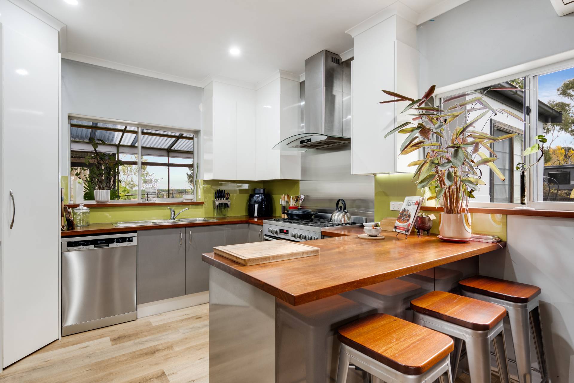 • Renovated open plan kitchen, living and dining with views over the wetland, and seamless transition to the decked entertaining area. The kitchen offers dishwasher, beautiful Jarrah timber benchtops and gas cooking.
