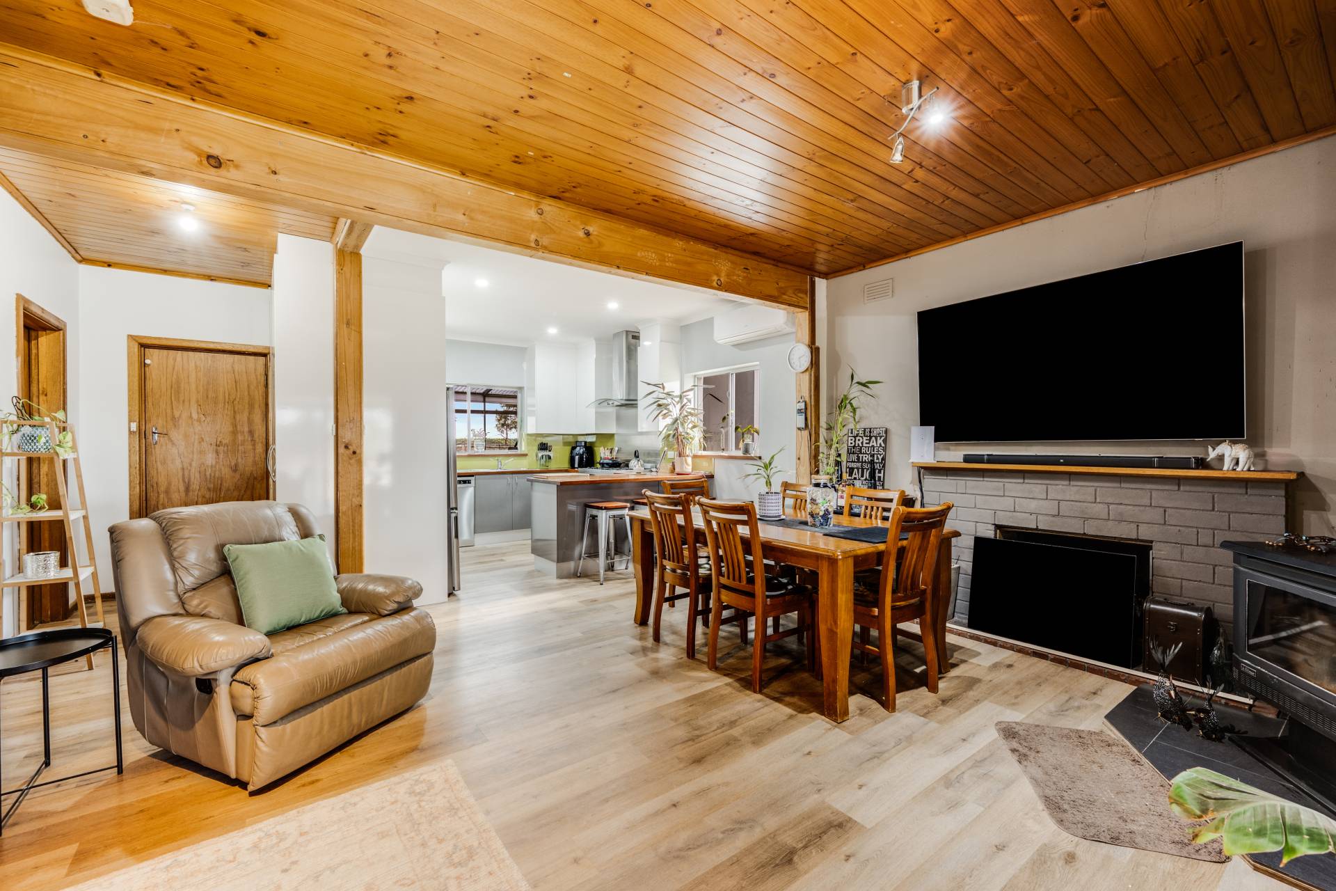 • Open plan kitchen, living and dining with slow combustion fire and split system A/C