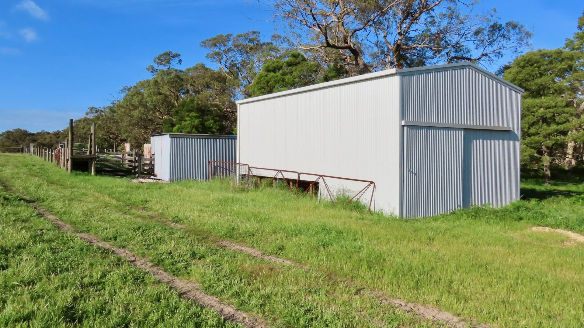 Water is provided by a solar pump which supplies a header tank which is reticulated to troughs around the property.  A small shearing shed is attached to the yards which are centrally located.