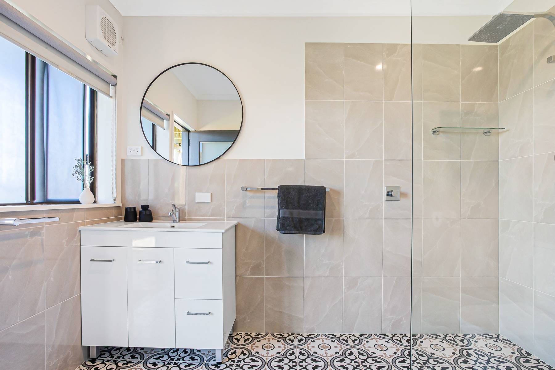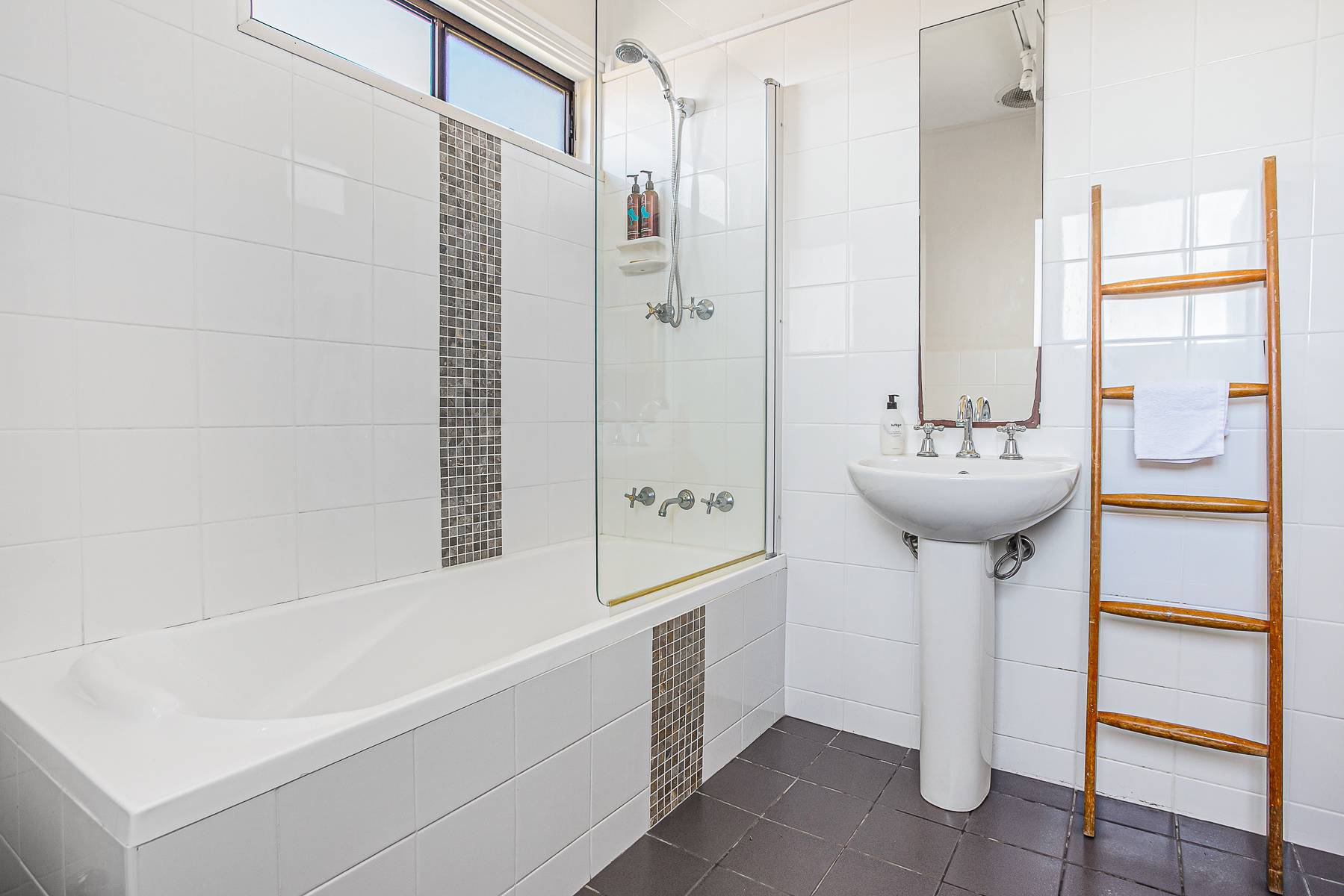 The recently updated downstairs area features a separate lounge and bedroom, convenient kitchenette and new modern bathroom. The lower level has also been freshly painted and offers split-system heating and cooling. The adjoining outdoor entertaining area is perfect for your morning coffee or evening wine, complete with an outdoor shower to rinse off the sand after a day at the beach. Designed as a self-contained space, the lower level is ideal for Airbnb rental or guest accommodation.