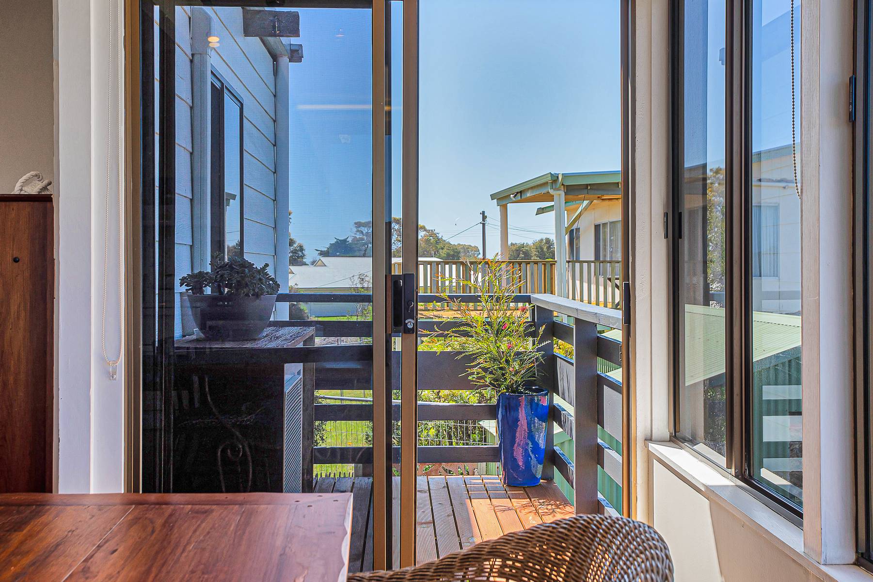 Upstairs opens into a bright, airy space with timber-look flooring and a seamless flow between living, dining, and kitchen areas. The timber kitchen offers generous bench space and integrates beautifully with the dining area, where large windows capture tranquil views of coastal vegetation and the estuary system to the South. A small adjoining deck is perfect for morning sunshine or evening relaxation.