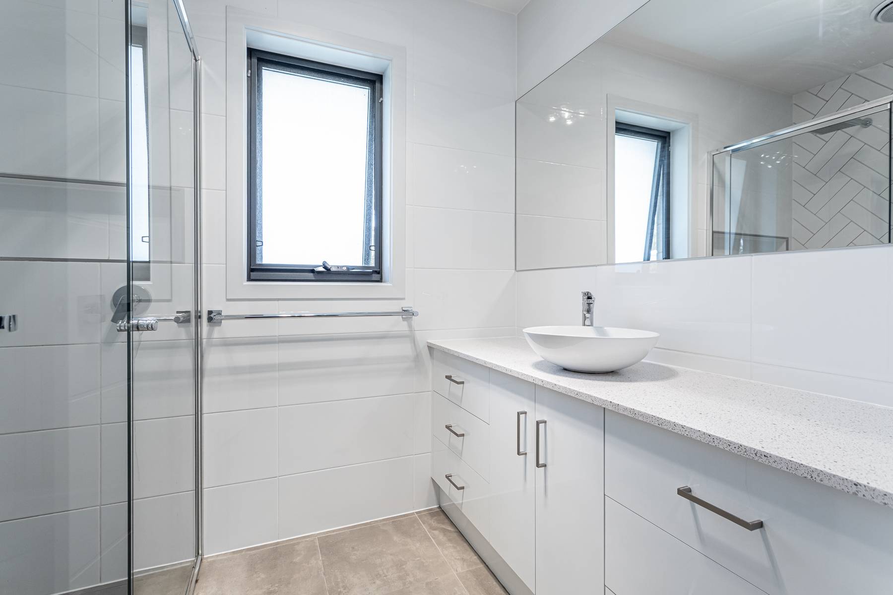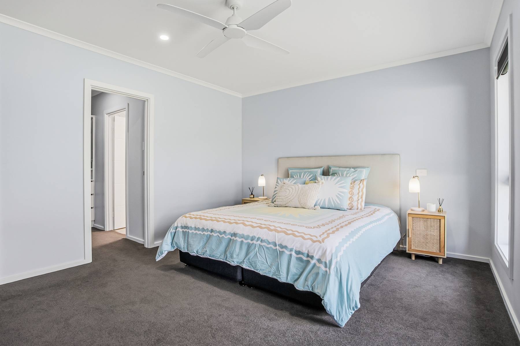 The large main bedroom is a peaceful retreat, complete with a walk-in robe, a sleek ensuite in neutral tones and lovely views across the native reserve opposite. Two additional bedrooms are well-sized, each offering excellent storage and pleasant backyard outlooks. The main bathroom is equally impressive, featuring a separate shower and bath, along with a conveniently located separate toilet.