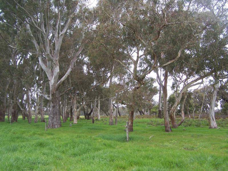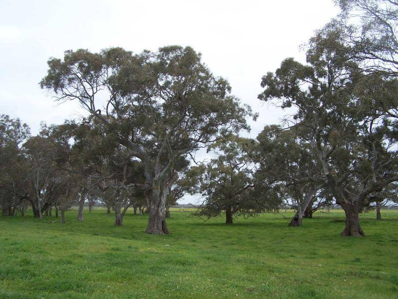 Sandy Loam flats with scattered redgum and limestone rises, odd area of Terra Rossa