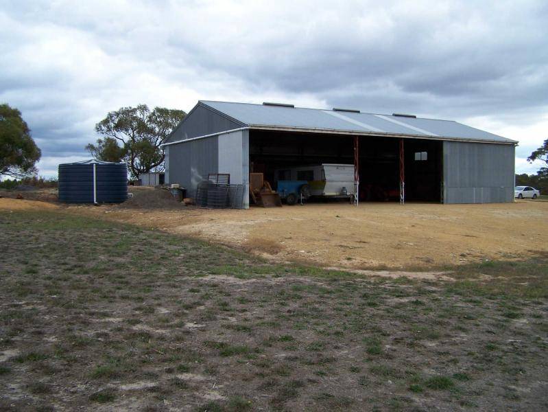 HOMESTEAD & GARAGING: A substantial solid brick and stone residence being approximately 156 square metres in size. An added feature is the enclosed 3m wide verandah which links the home to the double garage of some 91 square metres. This verandah and garage area has concrete floor, power, aluminum windows and sliding doors plus two roller doors to access the garage.