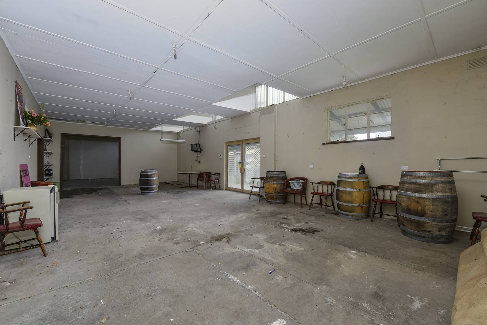 The side building offers a very large open floor space, paved veranda and fenced outdoor display area.