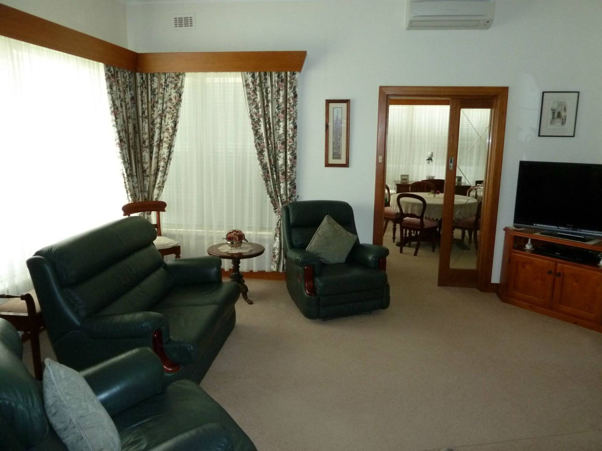 The home includes a recently renovated kitchen, formal dining with open wood fire place, 3 large bedrooms with extensive built in robes, various heating and cooling options and study.