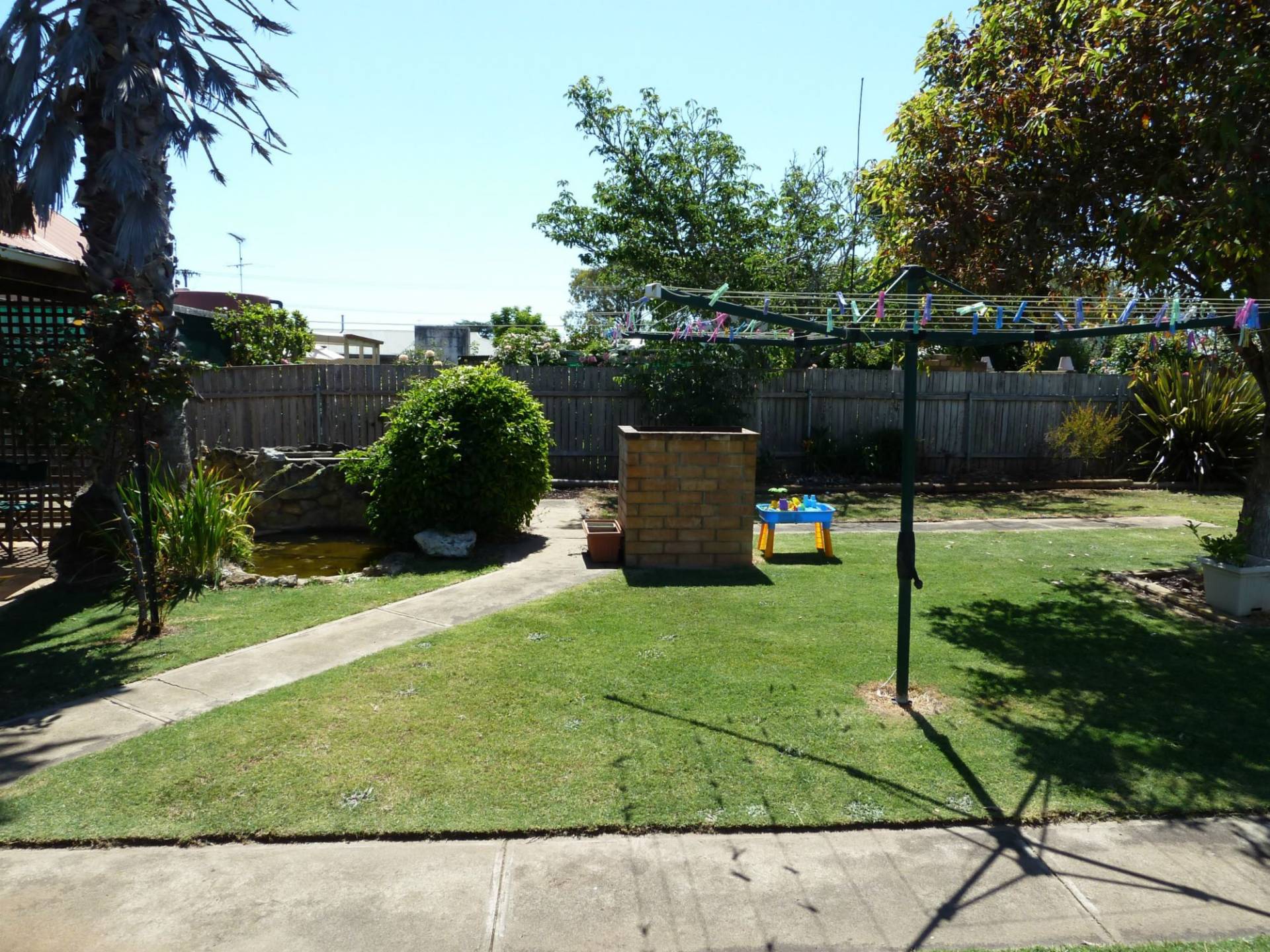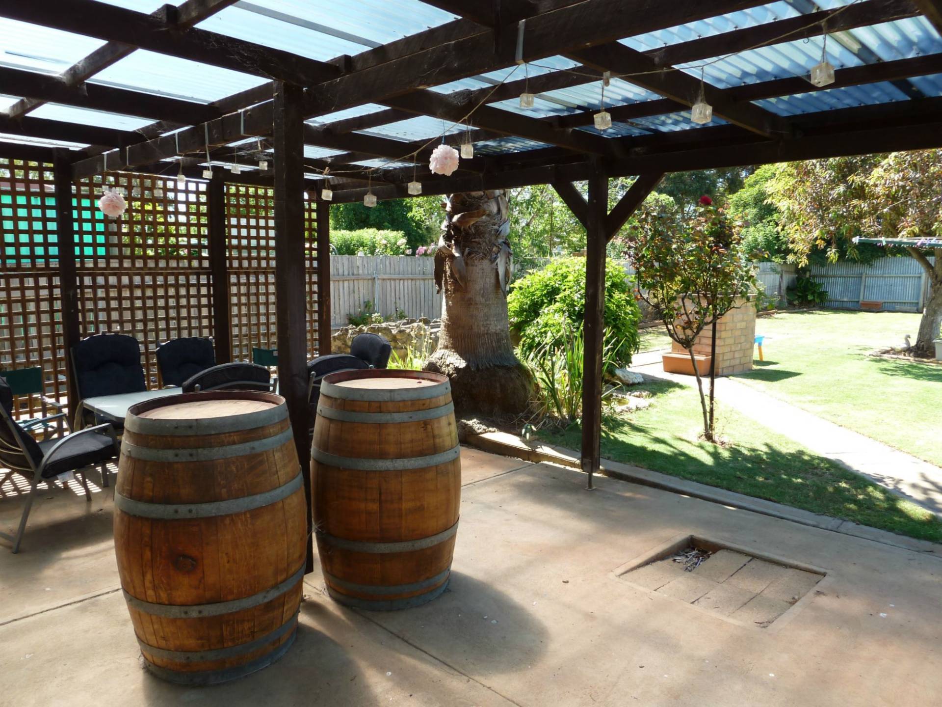 Outside entertain guests under a great size pergola with built in brick BBQ looking onto the well manicured lawns and gardens which includes veggie patch.