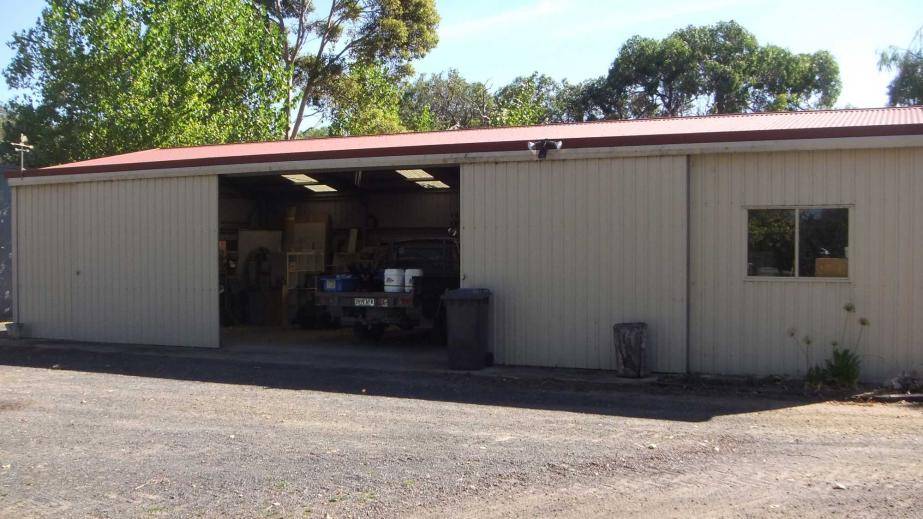 "o Machinery Shed 26m x 10m + Work Area with Pit and Power, 1/3 Concrete. "