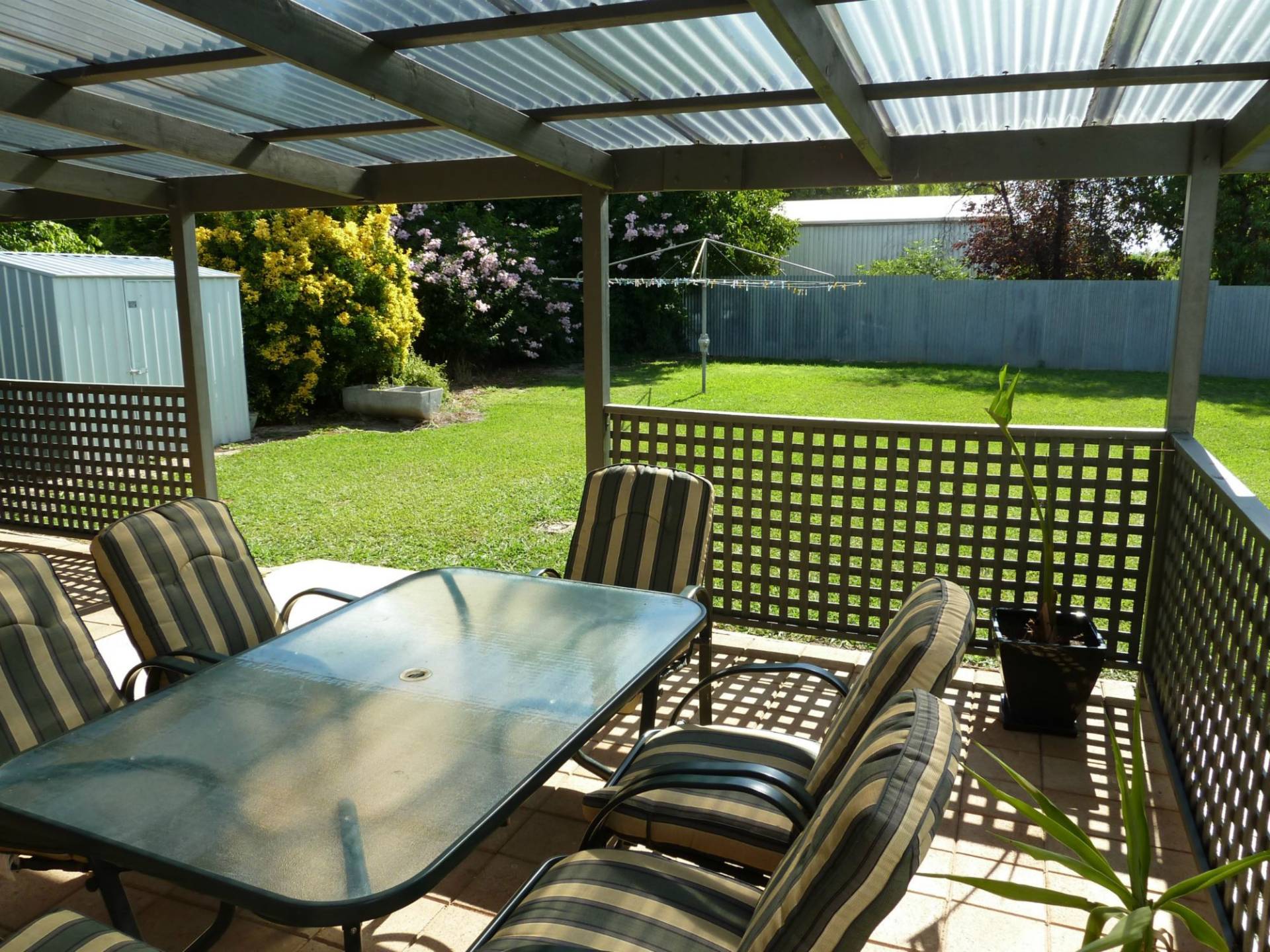 There is a carport, garden shed, outdoor entertaining area, the house is on rainwater and there is a bore with pop up sprinklers.