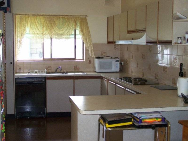 3 bedrooms, all with built-in robes; kitchen with pantry, dishwasher, electric wall oven, hot plates, breakfast bar; meals area; bright and roomy lounge with s/c wood heating; rumpus room or 4th bedroom; enclosed rear yard with garden/wood shed, bore, double vehicle stone garage plus pop up sprinklers and carport.
