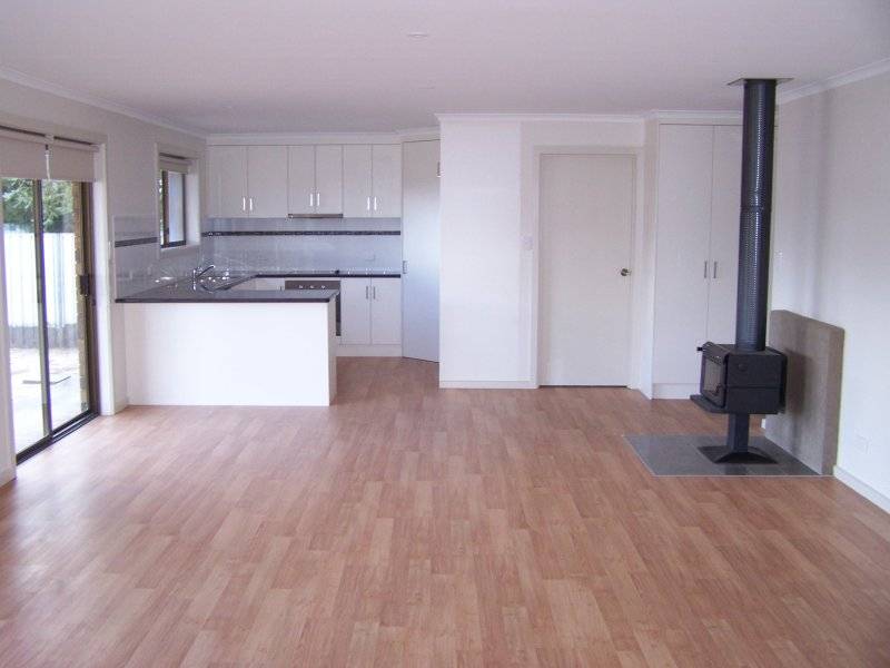 The entrance takes you into the main living area which has new floating timber floors, new slow combustion wood heater and feature down-lights.
