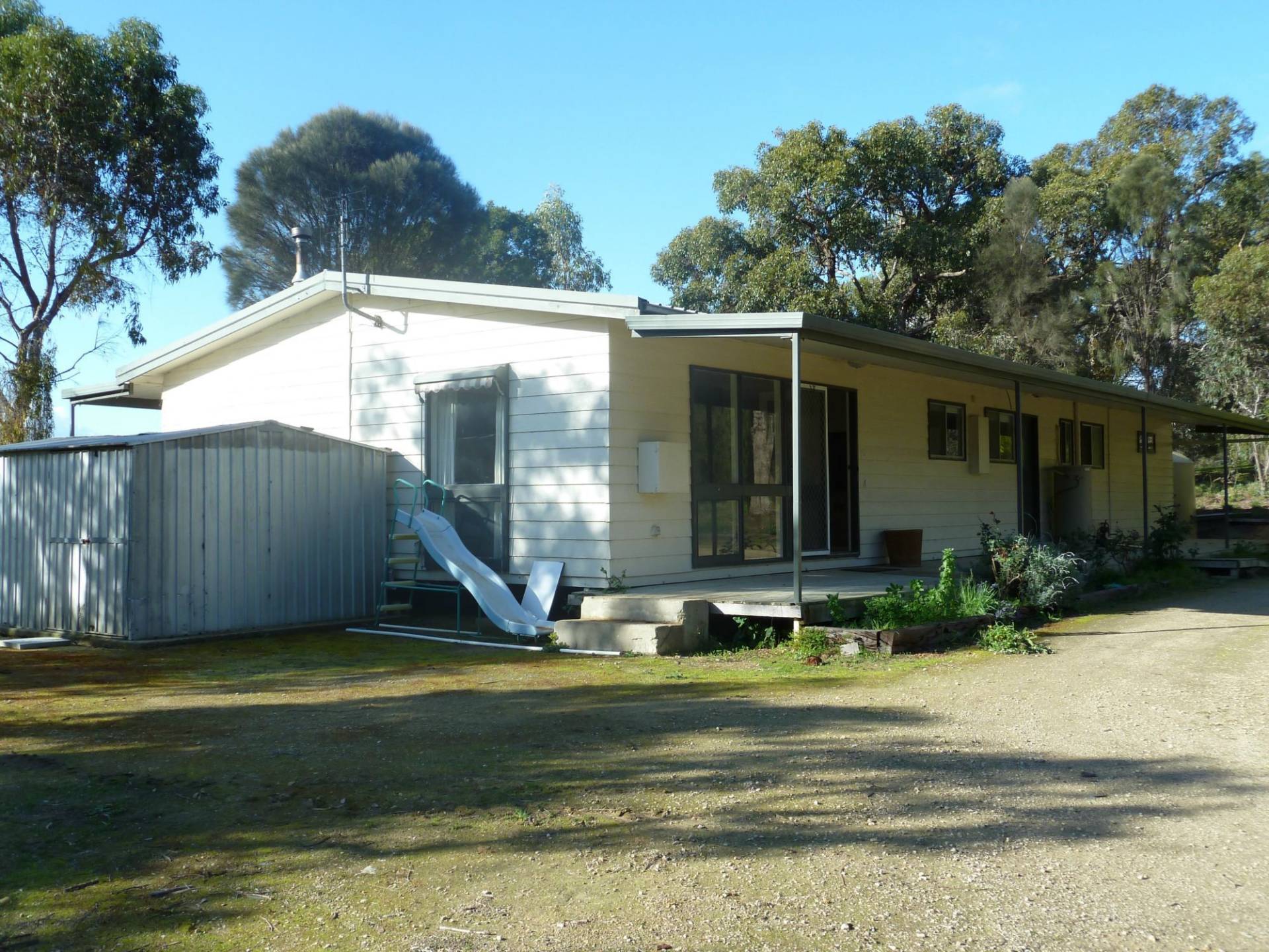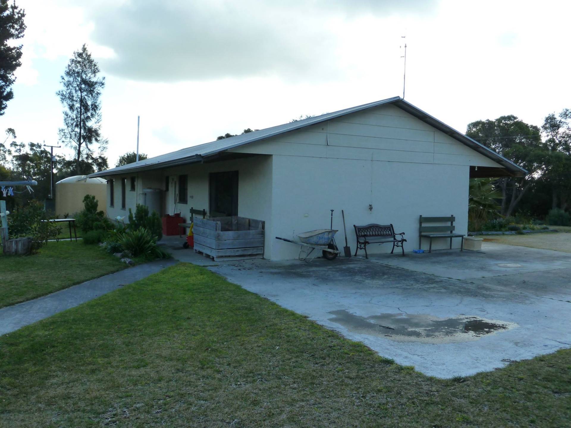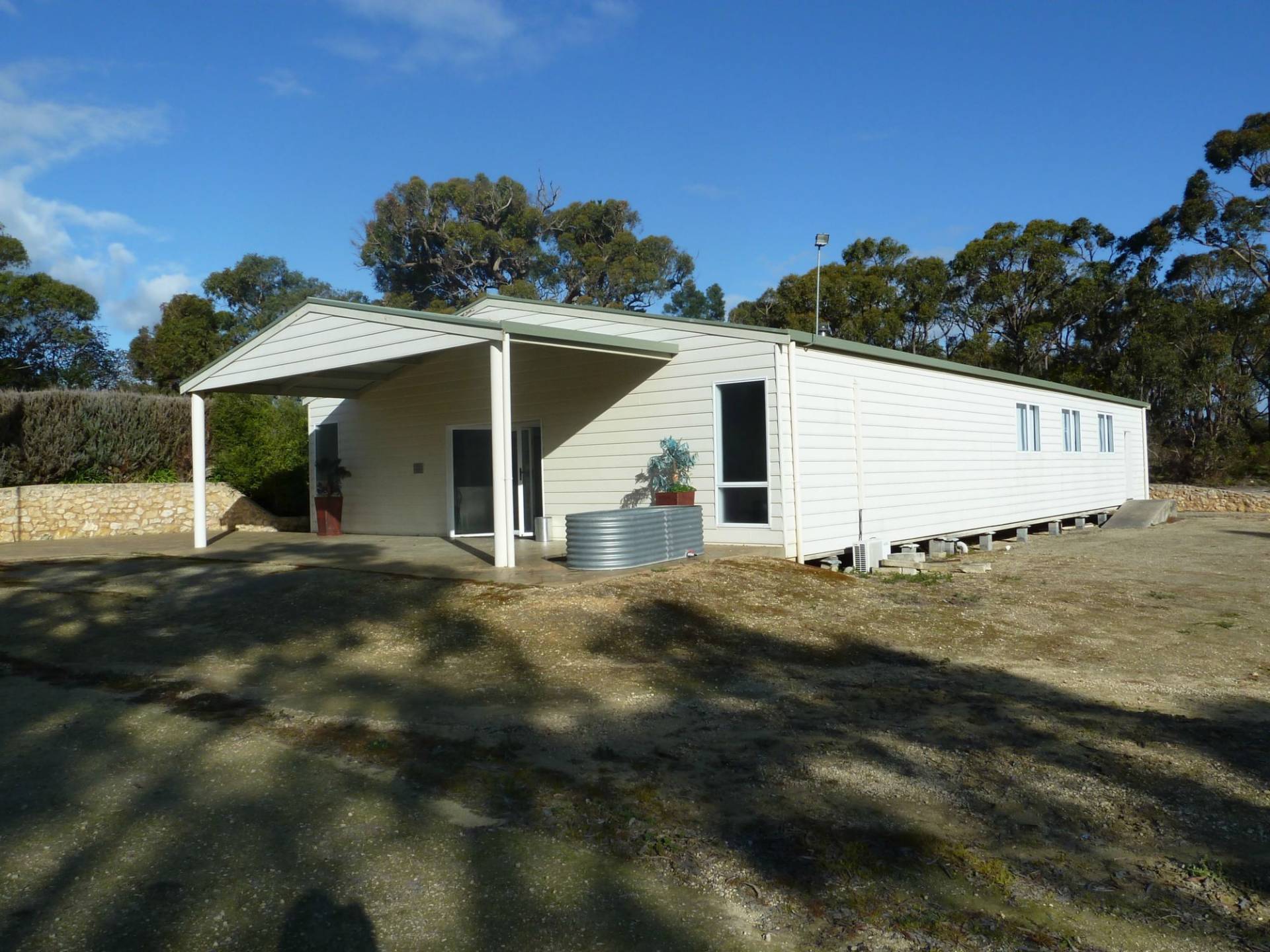 Timber framed portable building with central air conditioning. Used as a family home it features 4 bedrooms, lounge, dining and galley kitchen. Attractive veranda over looking the irrigated paddock area.