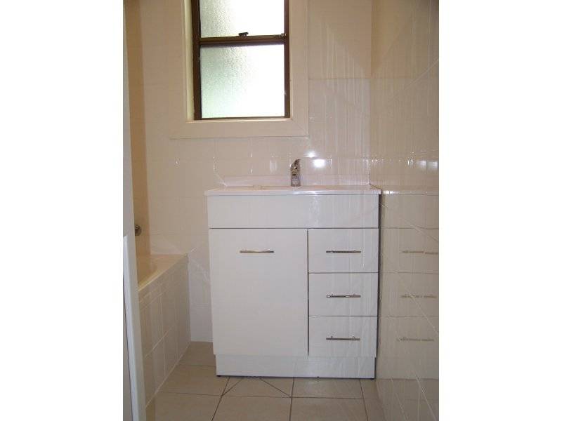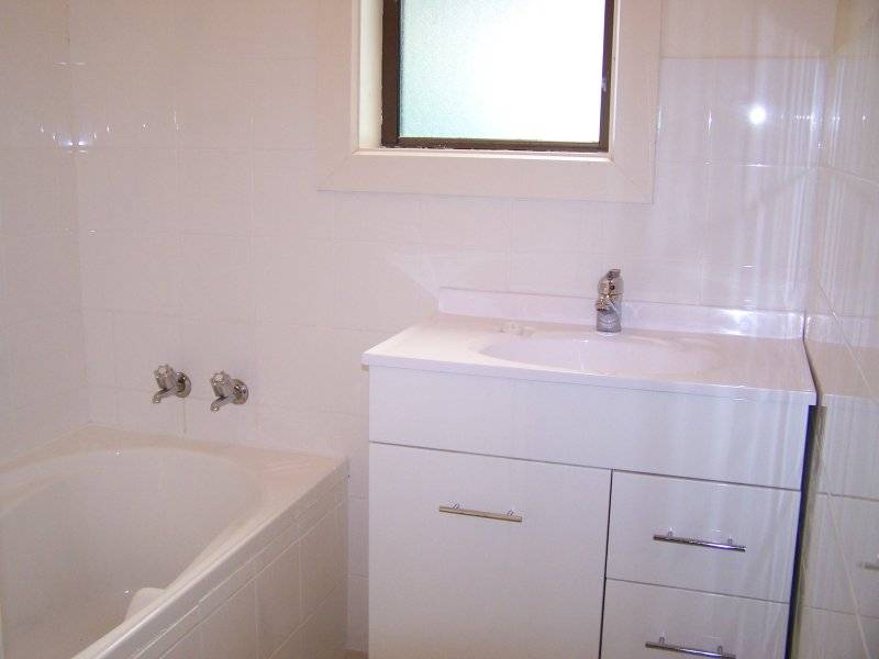 Newly renovated bathroom with new tiles, bath, vanity and fittings