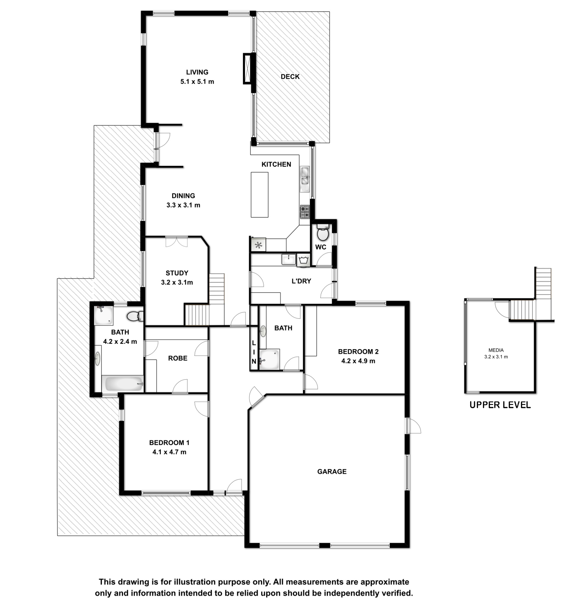 A generous hallway takes you past a well thought out laundry which houses a separate toilet and provides access to the main bathroom. Further along are the two main bedrooms which are generous in size; one with built in robes. The master suite features an impressive walk in wardrobe which opens into the ensuite with a deep bath and large shower.