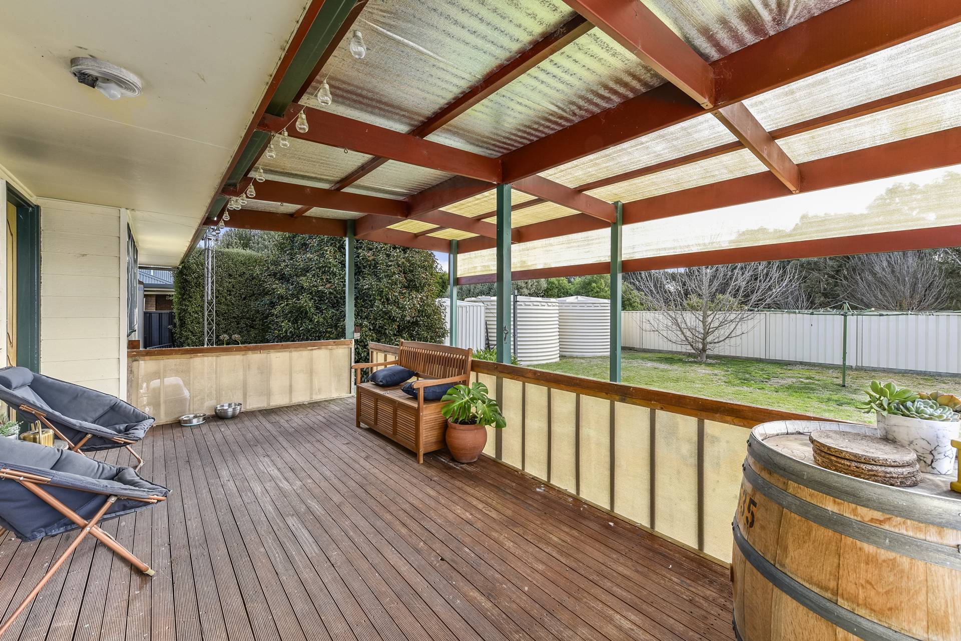 Located on the quiet Queen Street the timber frame home is situated on a 792 square metre allotment. It offers three good sized bedrooms with built ins located in the main and second bedroom. A modern bathroom features a shower and separate bath.  A spacious, yet cosy lounge area enjoys all round comfort with slow combustion wood fire and split system aircon. The lounge extends to the kitchen/dining which has a beautiful outlook to the undercover outdoor patio and secure backyard.