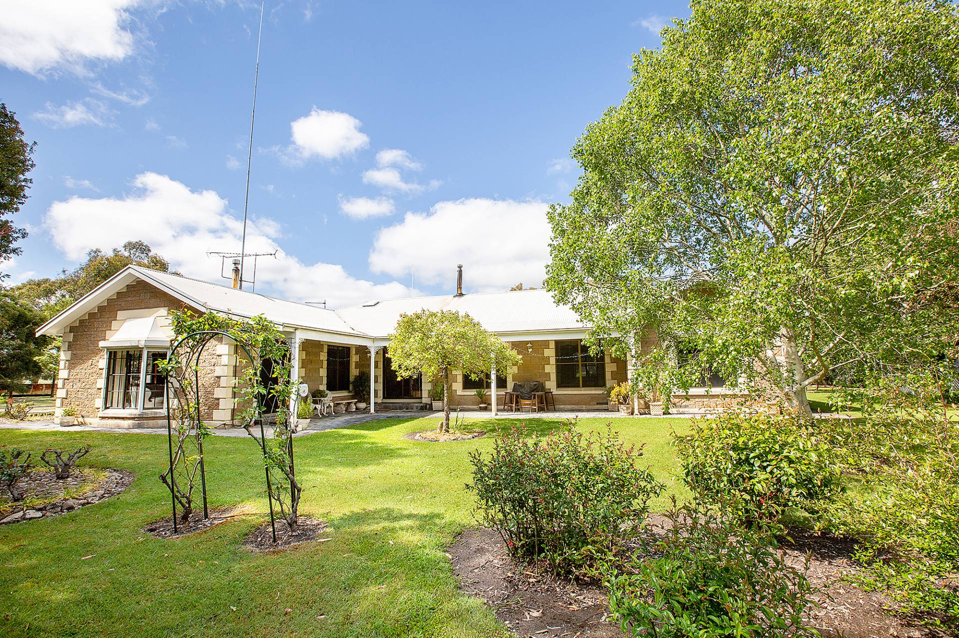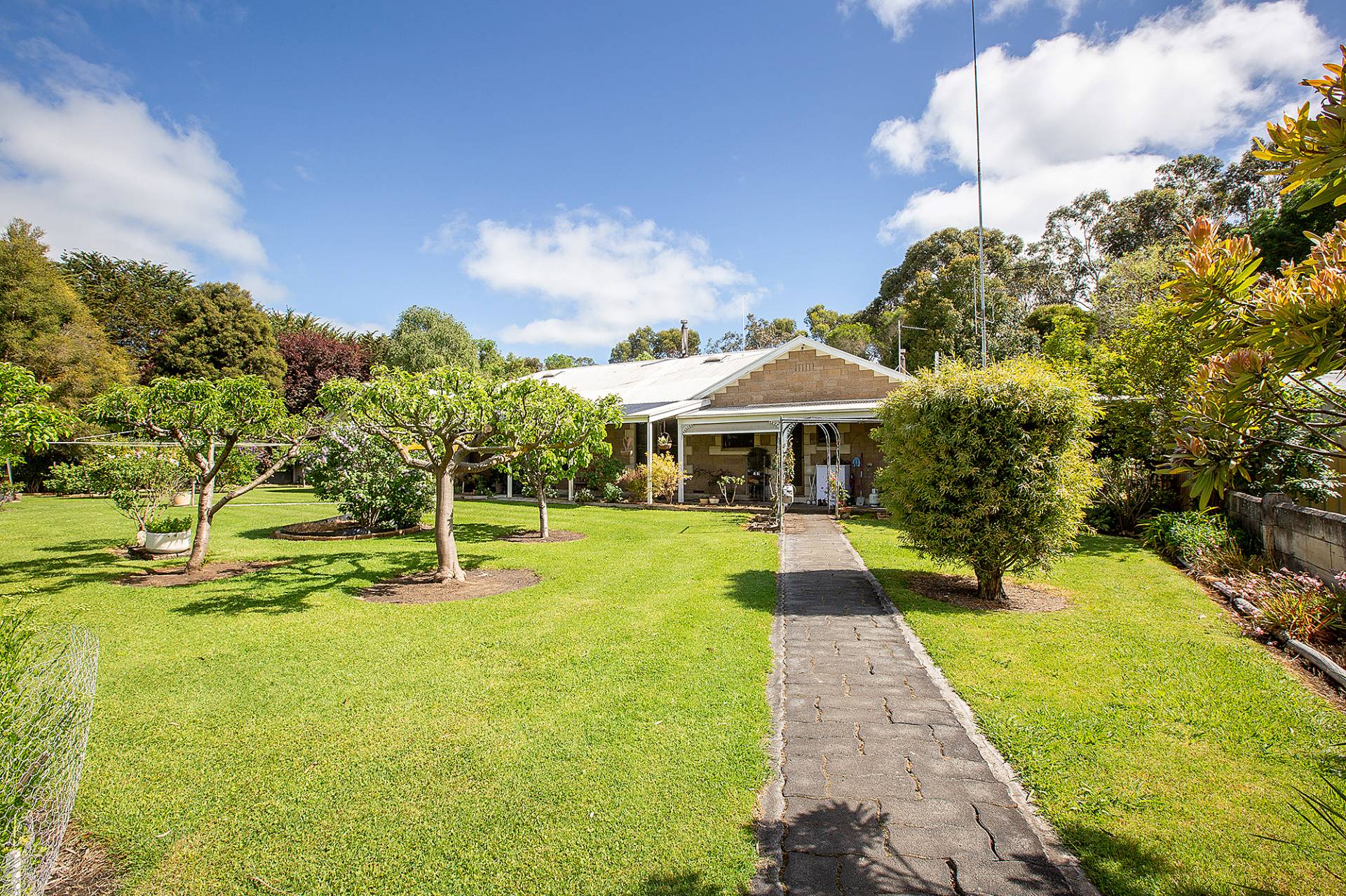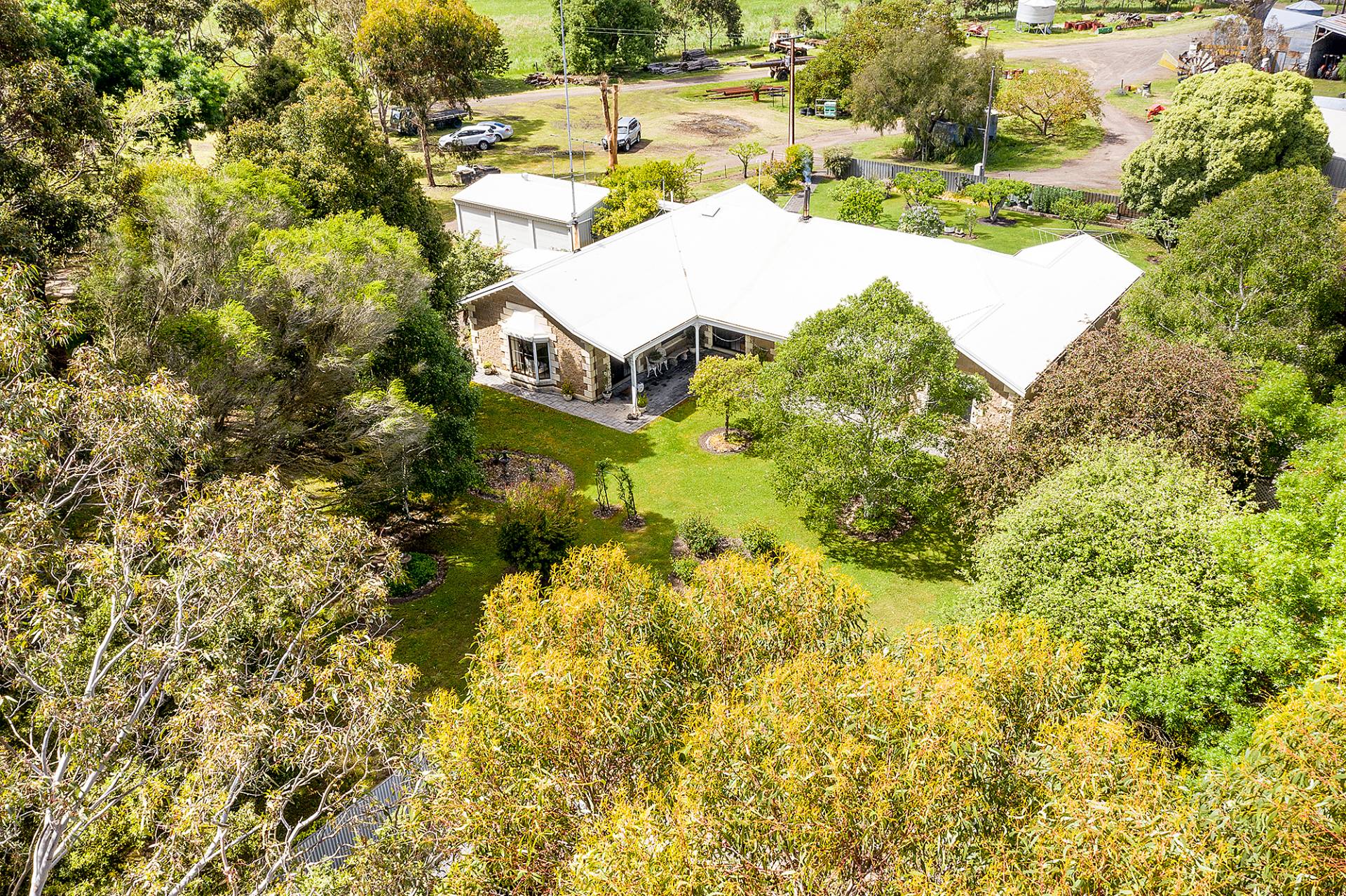 Improvements include an exceptionally well presented stone faced veneer dwelling with five large bedrooms, main with walk in robe, two bathrooms, kitchen/meals area and seperate lounge and formal dining rooms. The home is set within attractive grounds with established trees and gardens. A triple bay garage is also located close to the home.