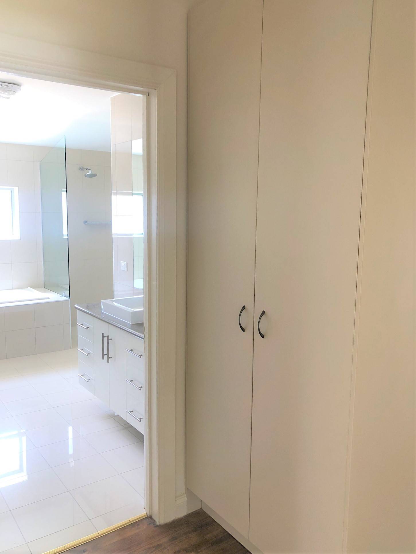 The bathroom is an unexpected delight; A huge, deluxe bathroom finished to the highest standard featuring large bath, frameless shower screen, floor to ceiling tiles, concealed linear floor drainage & just outside the door, a large linen cupboard.