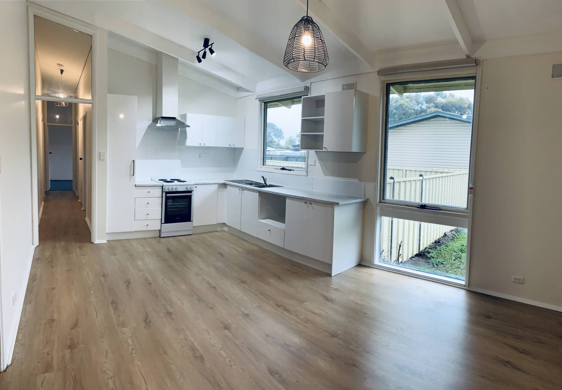 Open plan living with a brand new kitchen. stepping outside the property you will find a Large Carport, 2 bay shed and a large backyard