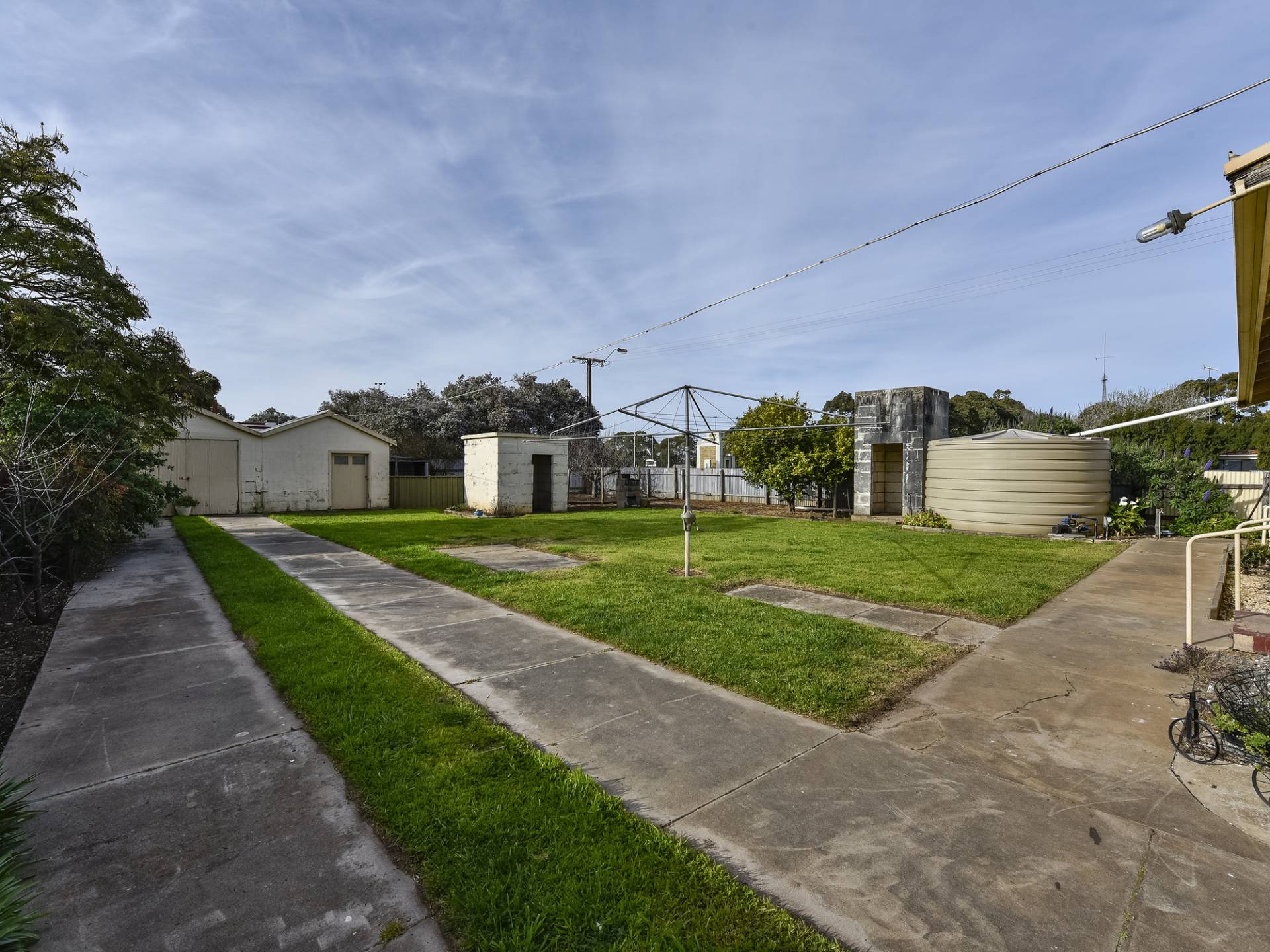 • Large rainwater tank plumbed to house.