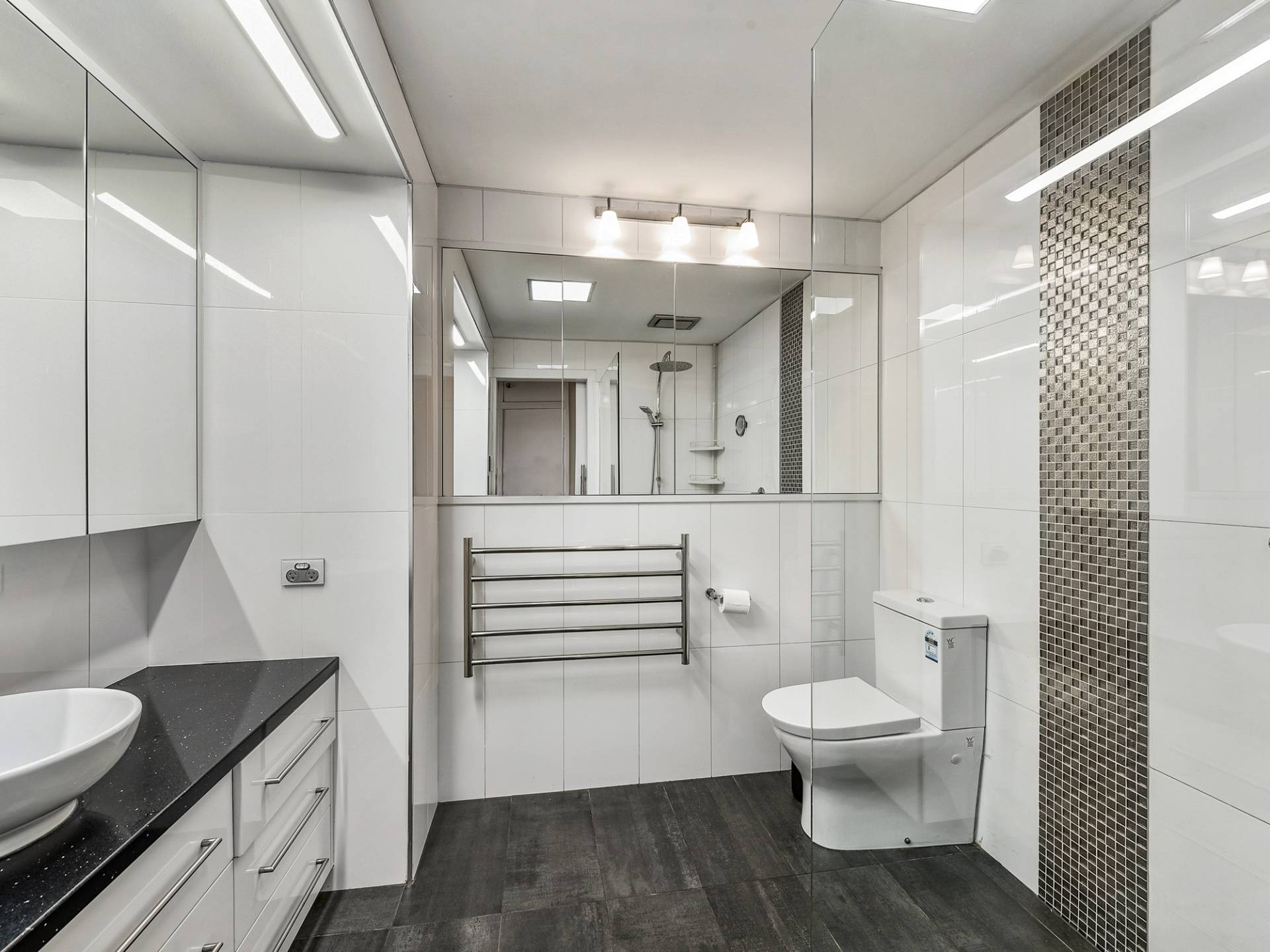 All character features aside, this house has had some serious renovations. The kitchen is certainly high end with granite benchtops, 2pac finish, an abundance of drawers and cupboards (with soft closers). Stainless Steel appliances including dishwasher and 6 burner gas cooktop complement the cabinetry perfectly. The bathroom – similar: Large tiles to the ceiling, under floor heating and heated towel rail, huge expanses of mirror and storage all with a contemporary finish.