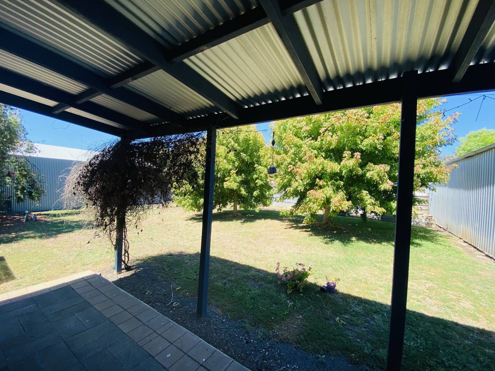 The large 996m2 block has access along the Southern side to the rear of the block where we find the shed; 9.1m x 6.0m with concrete floor & power. Off here, a double pergola with space for a further 2 vehicles parked out of the weather.
