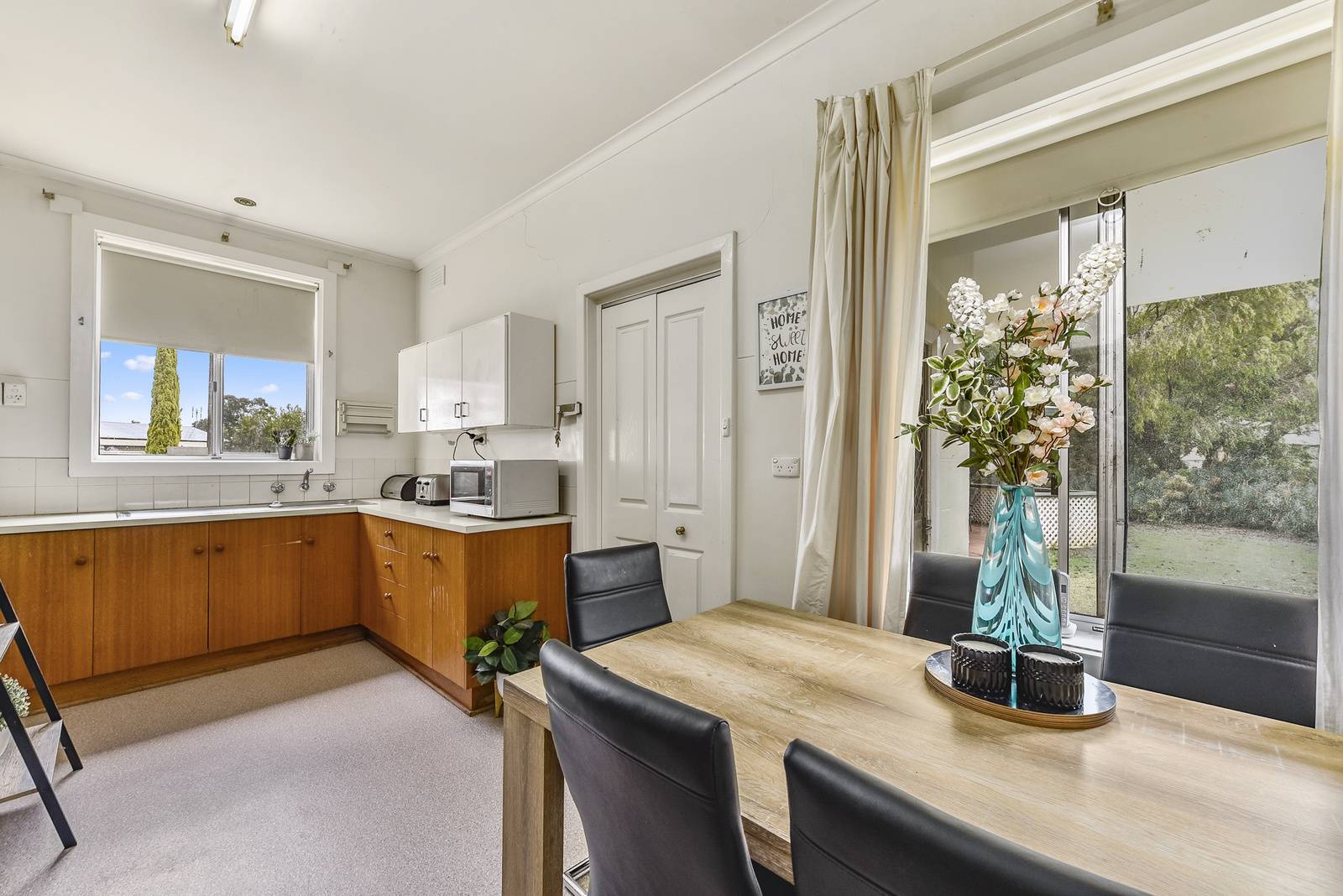The house has a great feel about it, with tasteful neutral finishes throughout. The combined kitchen / dining has new flooring, gas cooktop and extends through via a set of double bifold doors to the carpeted living area. Here, a slow combustion fireplace – a must in Penola, as well as a ceiling fan for all year comfort.