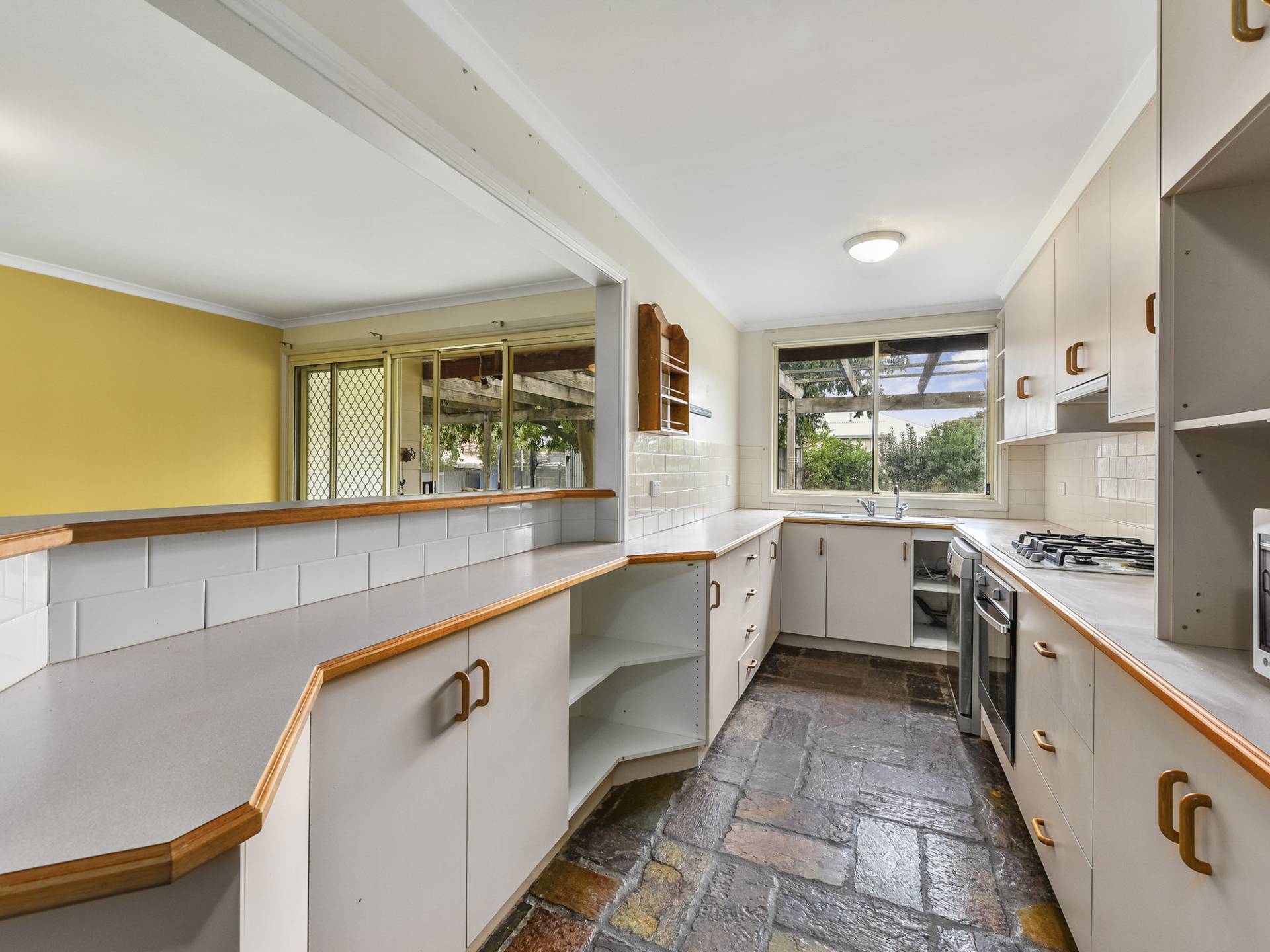• Double doors connect to the final section – a solid stone structure comprising of 2 spaces perfect for living / formal dining / rumpus (including second slow combustion fireplace), office, additional bedroom, bathroom, separate toilet, laundry, and storage.