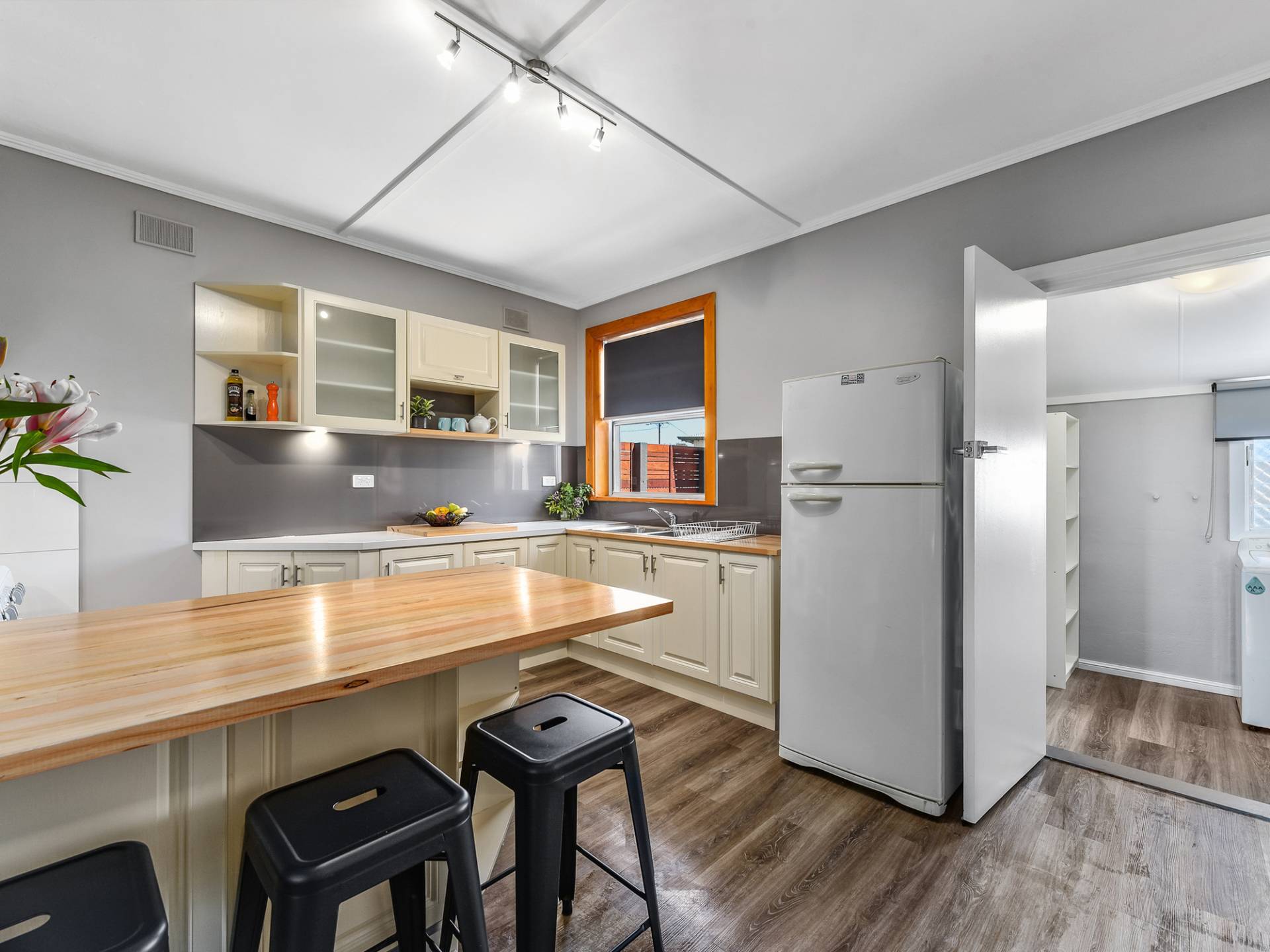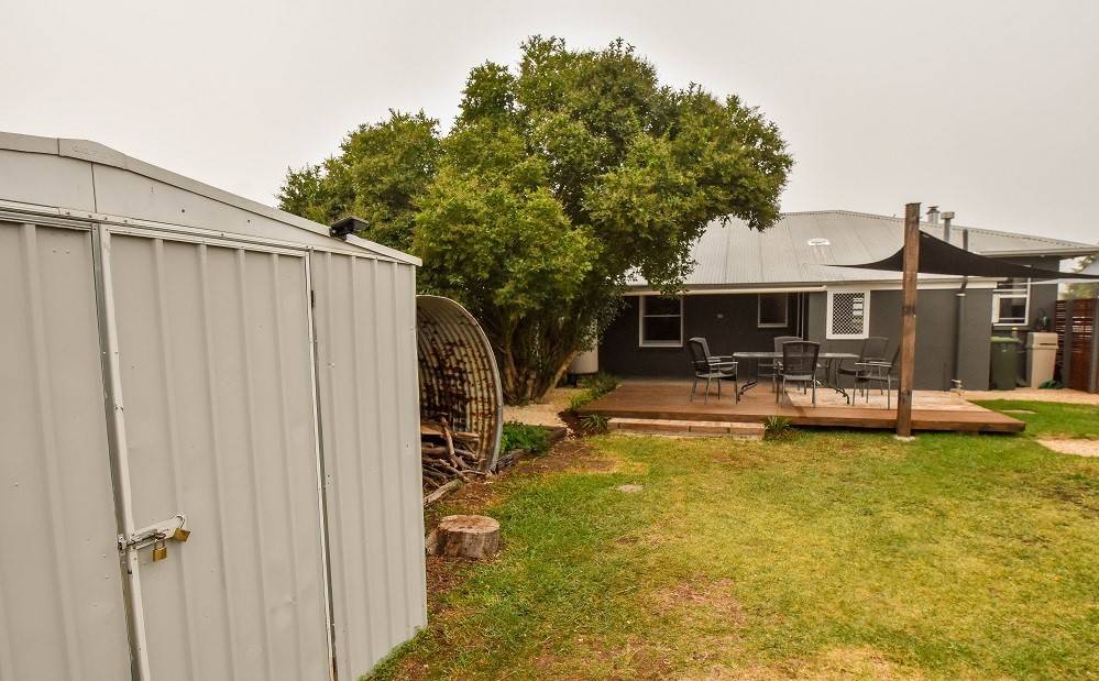 At the rear of the house, a lovely verandah overlooks an elevated recycled hardwood deck – a lovely spot to entertain. The whole of the property is securely fenced, has a 2-car driveway, a scattering of mature trees and established herb/vegetable beds.