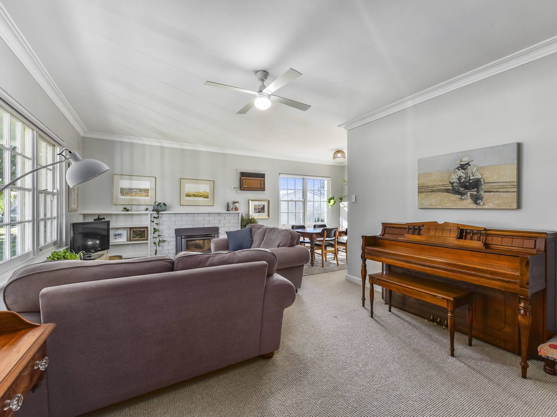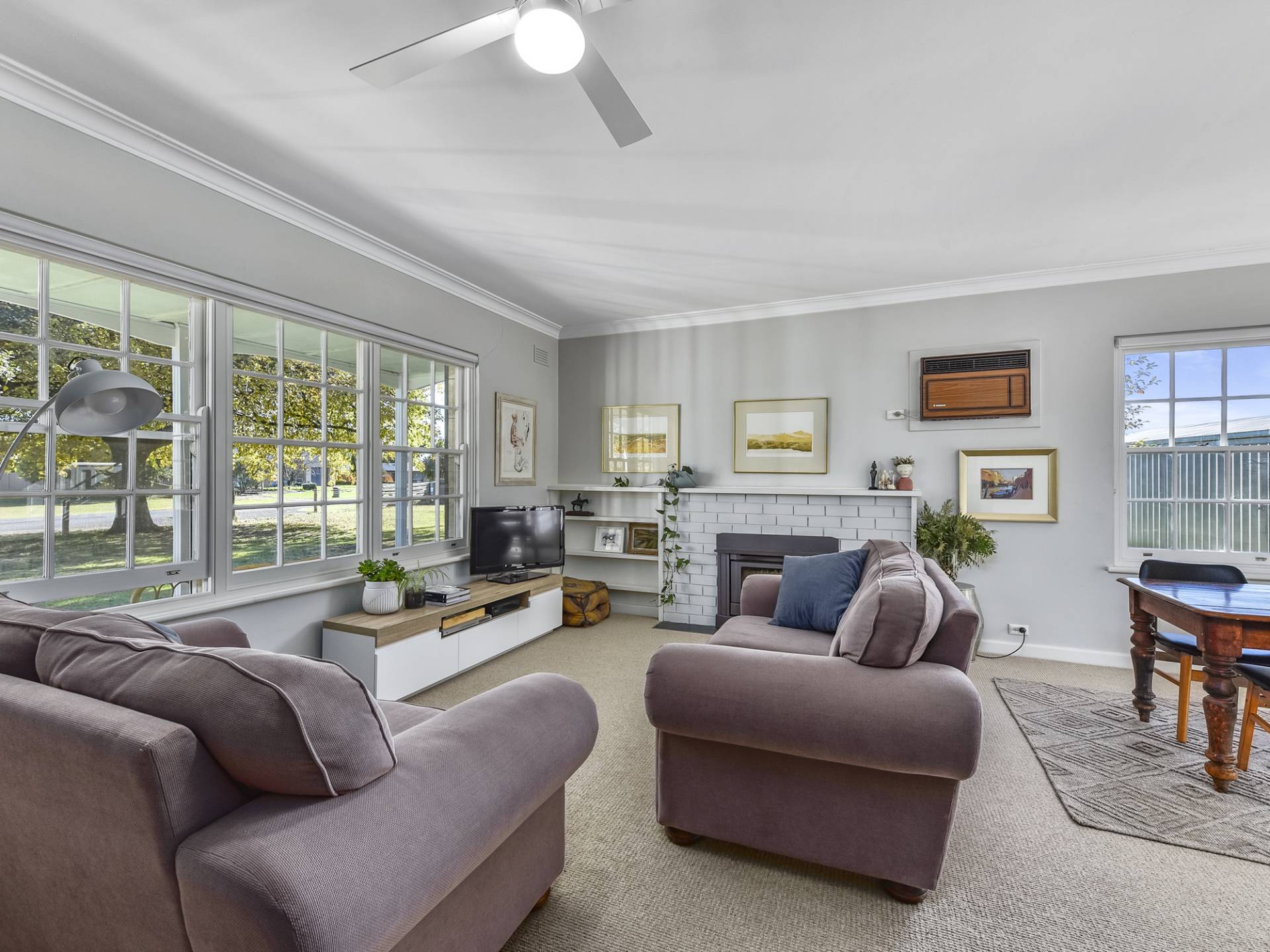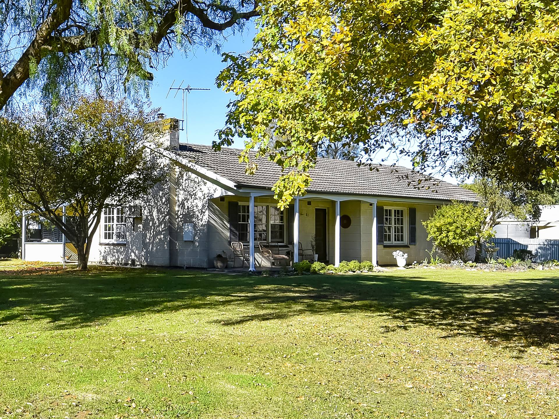 The galley style kitchen has been completely replaced - Very well thought-out, finished in bright, white tones, and set off by stylish window shutters. From here, connect through to the dining / living area – a space with a lovely feel about it… Enjoy the gorgeous views through the colonial style windows; Expansive lawn, garden and a pepper tree that is like something out of a story book. Here, you will be comfortable year-round with slow-combustion fire, air-conditioning and a ceiling fan.