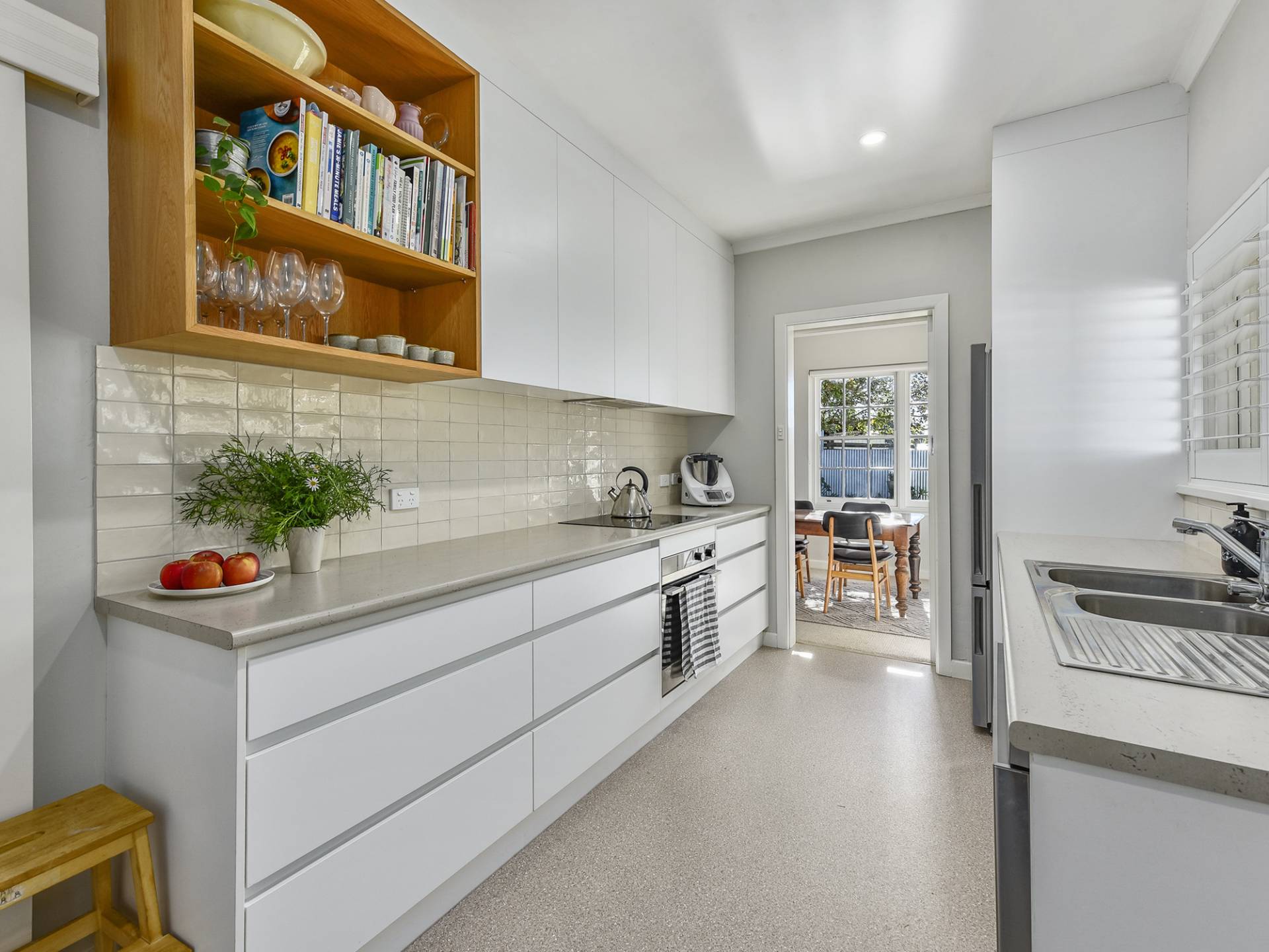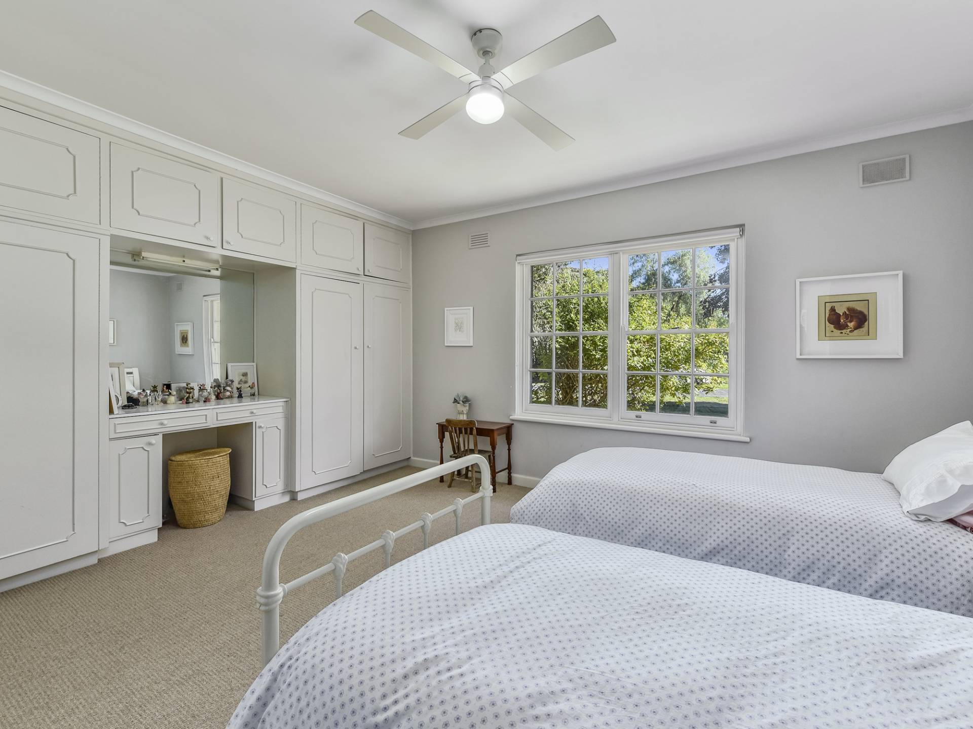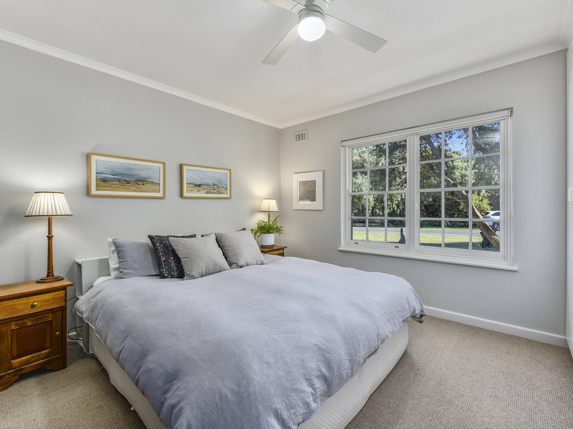 The galley style kitchen has been completely replaced - Very well thought-out, finished in bright, white tones, and set off by stylish window shutters. From here, connect through to the dining / living area – a space with a lovely feel about it… Enjoy the gorgeous views through the colonial style windows; Expansive lawn, garden and a pepper tree that is like something out of a story book. Here, you will be comfortable year-round with slow-combustion fire, air-conditioning and a ceiling fan.