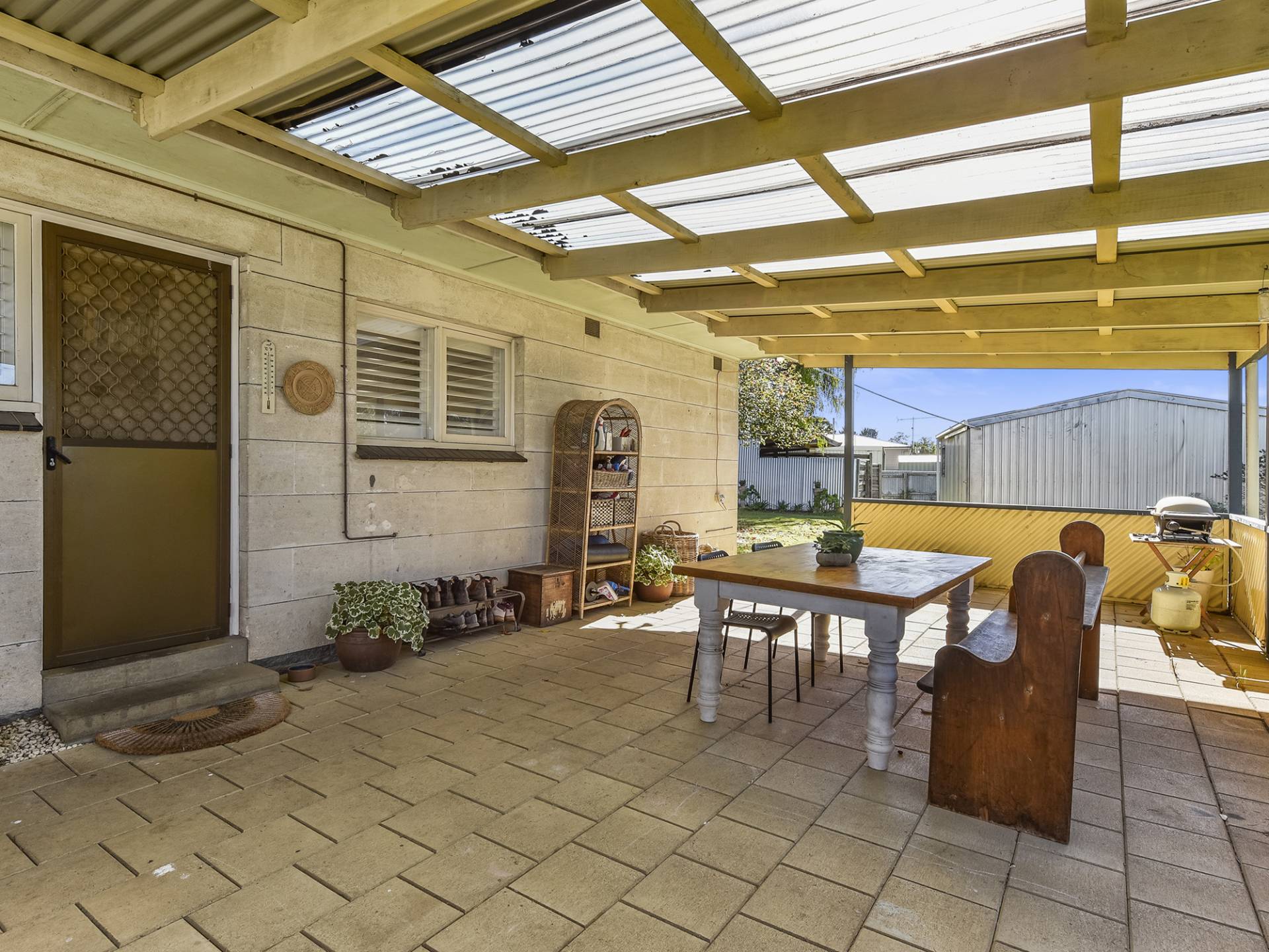 To the rear of the house, directly off the kitchen is a large outdoor covered entertaining area. Here you can sit back and take in the quite surrounds and enjoy the garden.