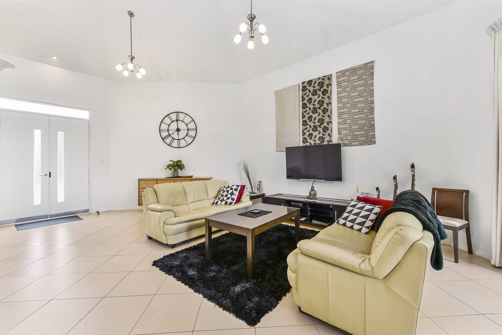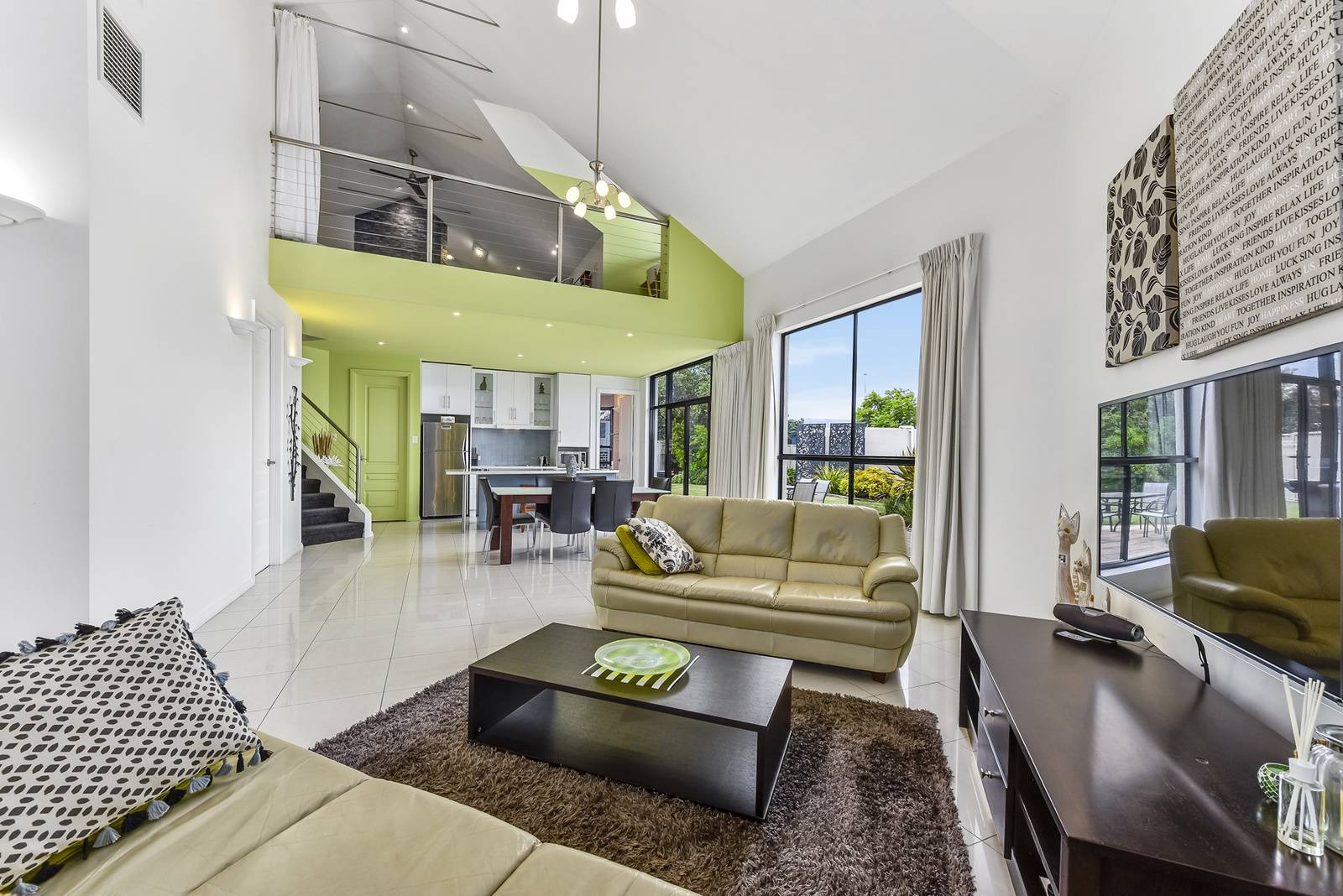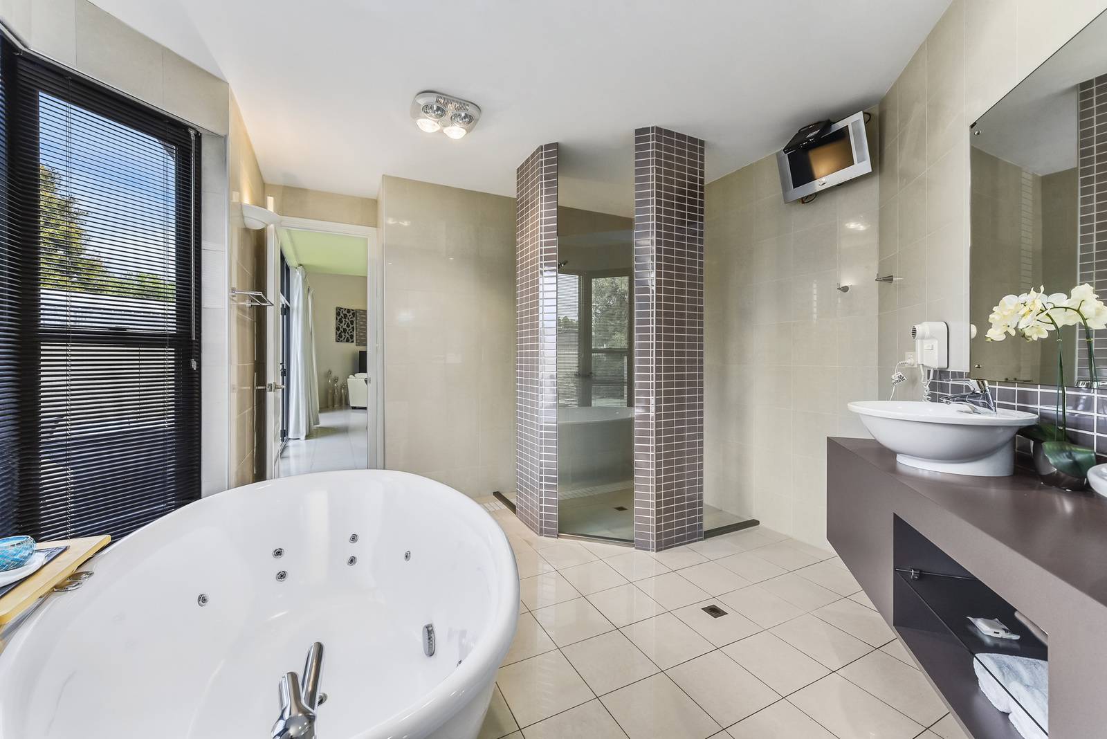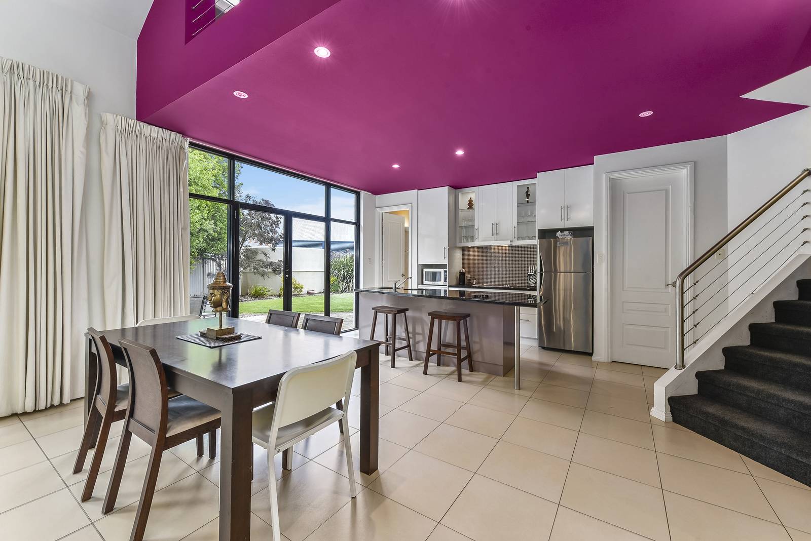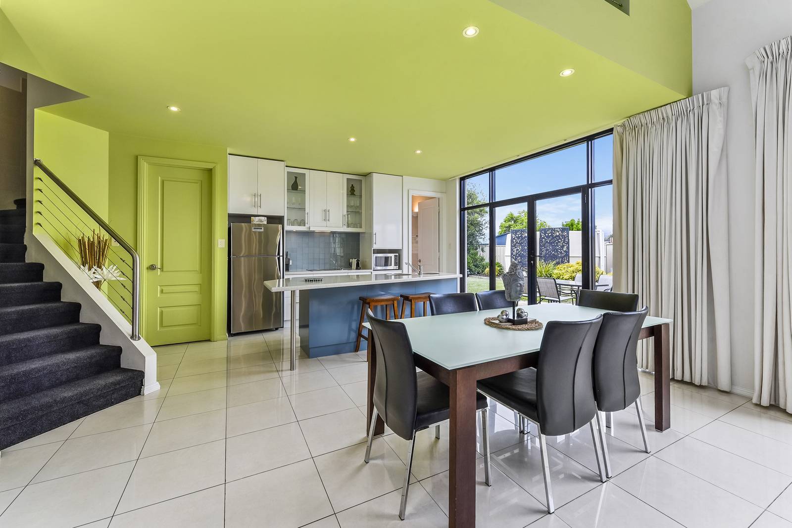 On the ground floor are two private bedrooms, the first with a queen size bed and the second with a king. Open plan lounge and dining, second sparkling bathroom which is adorned with an indulgent freestanding spa bath, double basins and a double shower.  Step outdoors for private entertaining areas, lawn & garden. Rainwater throughout.