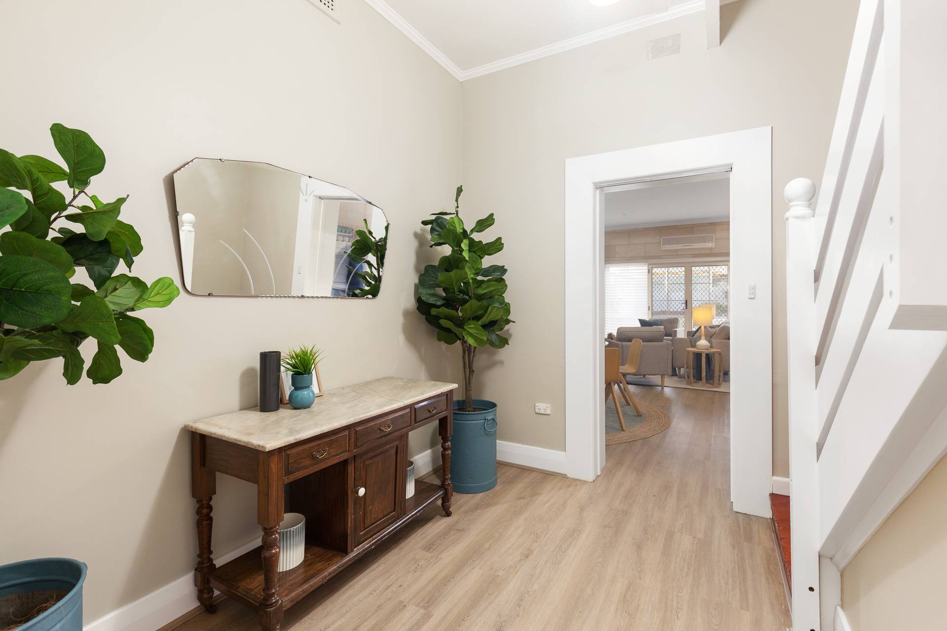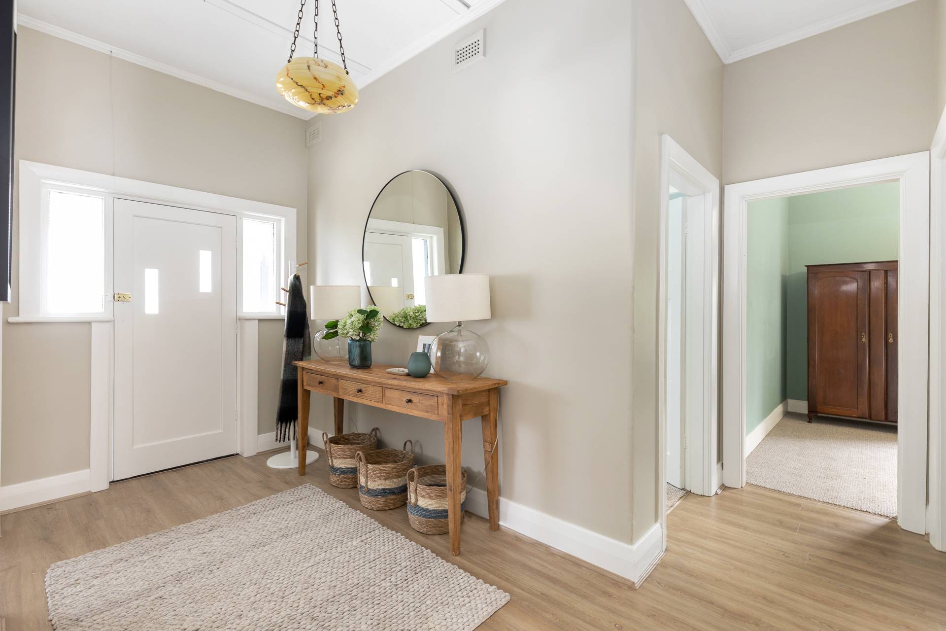 The entire home has recently undergone an extensive renovation and the results are truly breathtaking. The scene is well and truly set at the entrance; An attractive front porch finished with character tiles under foot. Through the front door; A generous entrance with both width and high ceilings. Here, in the original part of the house the character is evident in the tall skirtings, panelled doors and timber detailing.