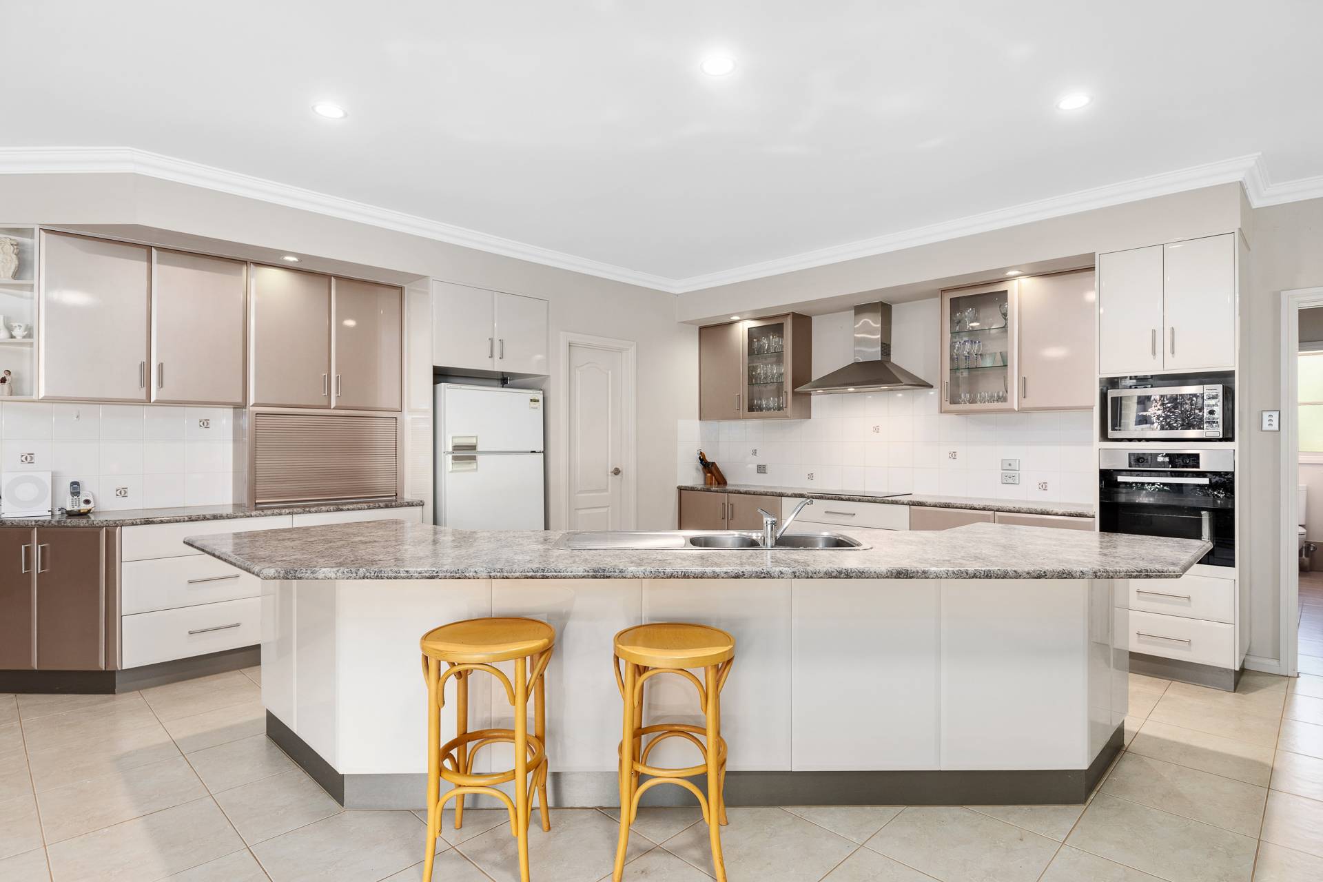 Outside, an attractive stone exterior has street presence. A horseshoe driveway delivers you directly to the front door. Alternatively, drive straight into your double garage under the main roof via the electric roller doors with inside access. The 8 x 4.5m shed to the rear also has a single electric roller door on the short side. The garden is easy maintenance, fully irrigated with pop up sprinklers and complete with veggie garden.