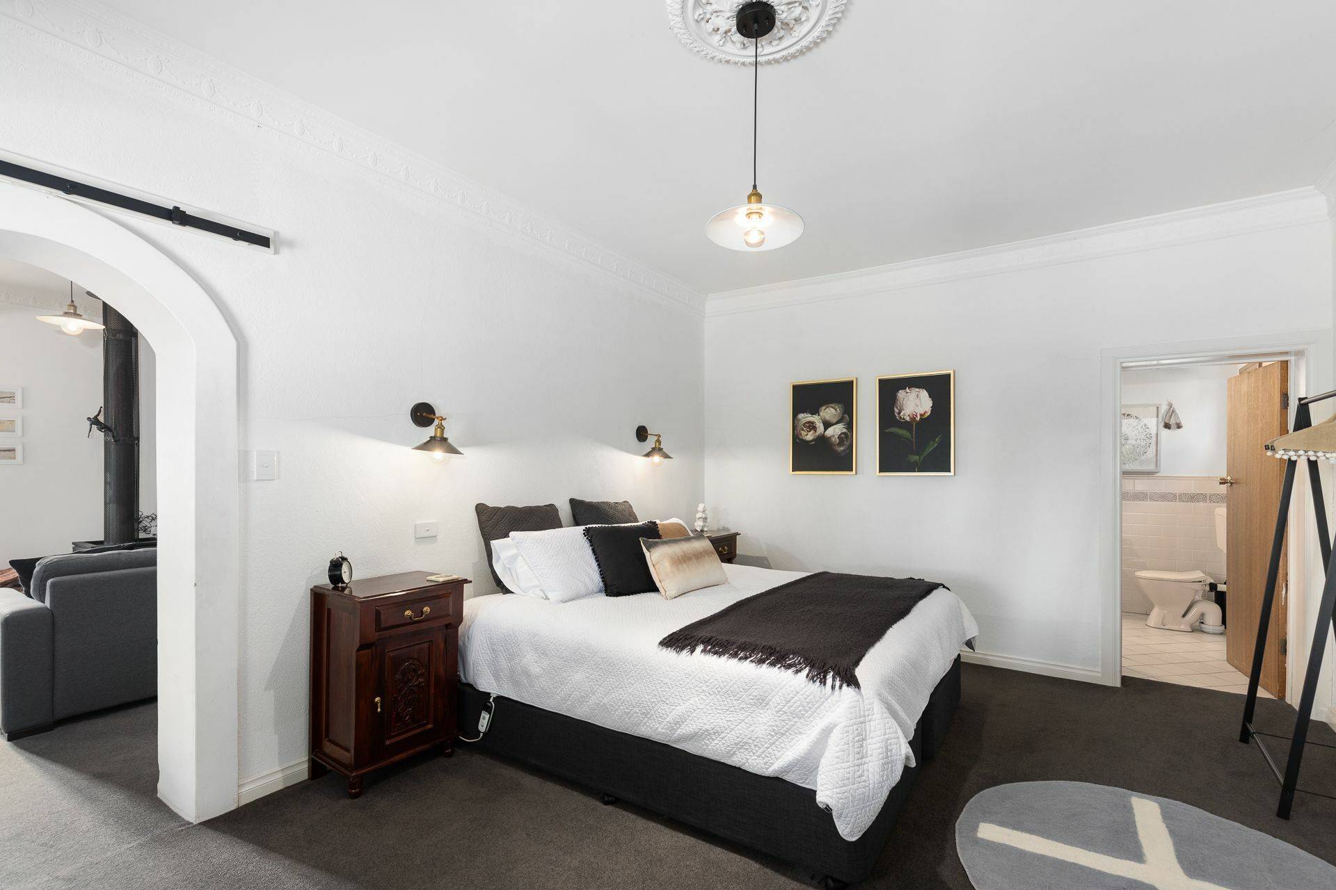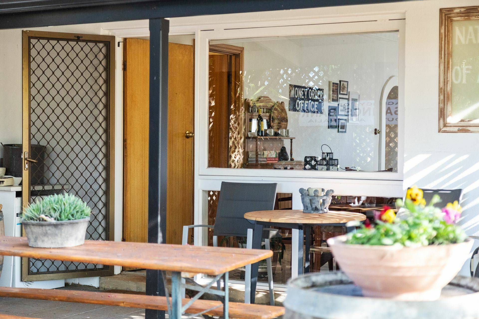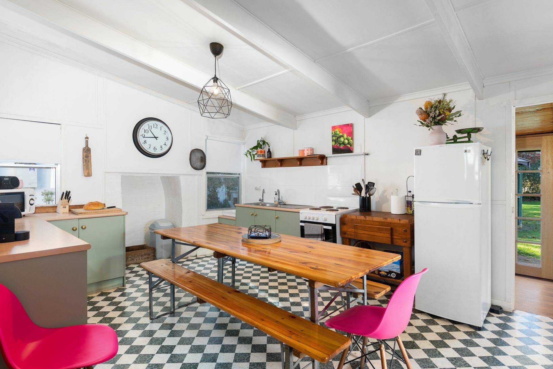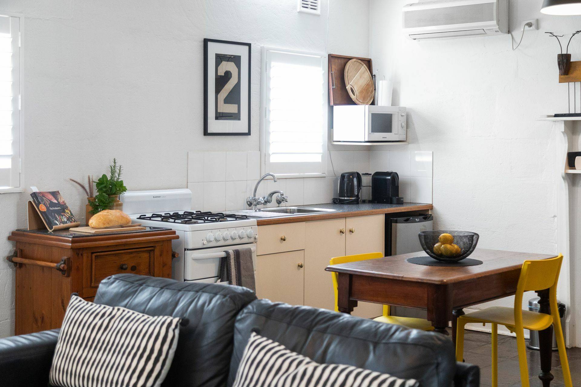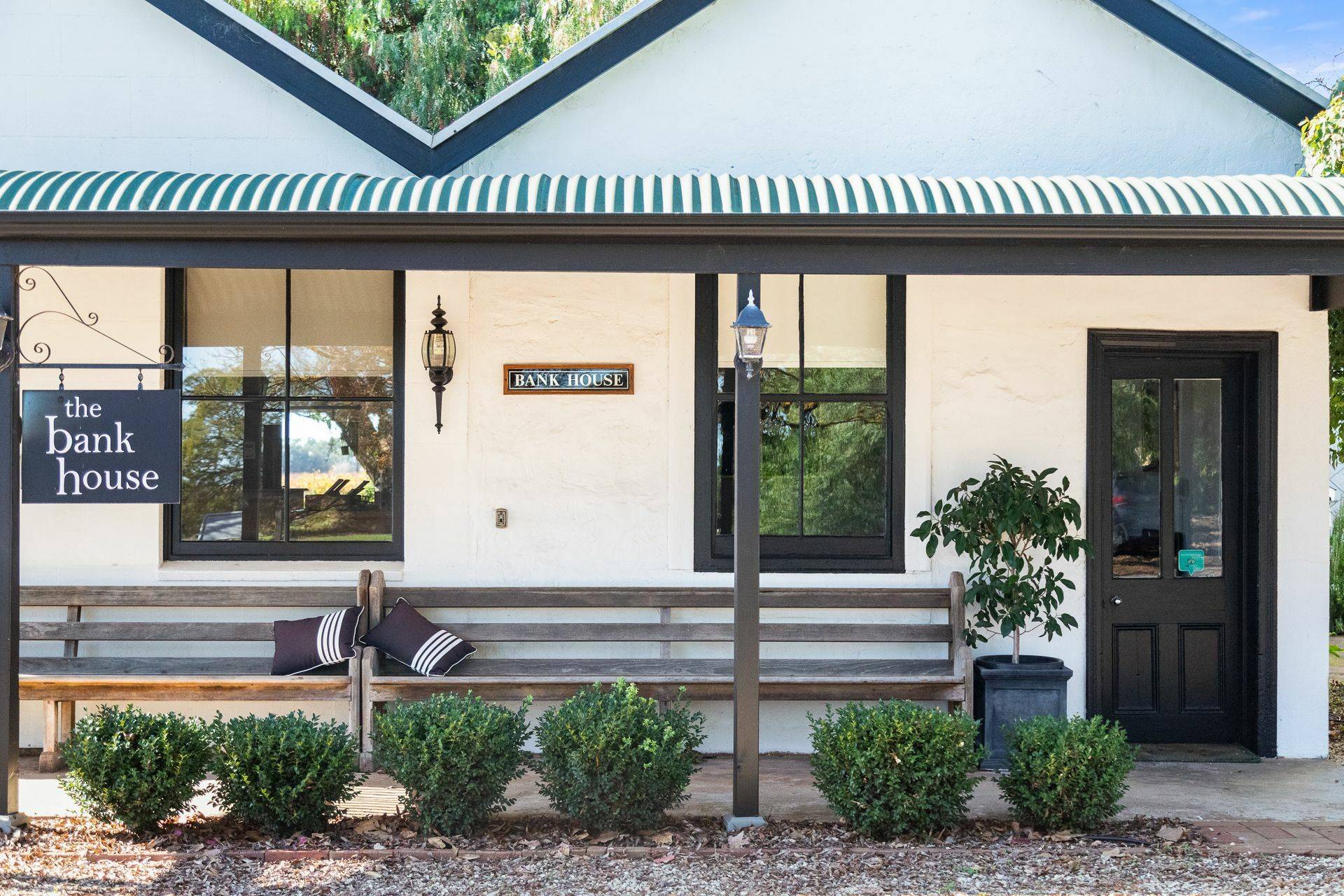 ‘The Bank House’ A lovingly restored 1917 limestone building with striking twin gables has street presence and an interesting history, having been both a bank and a post office in times gone by. This single bedroom cottage has a lovely open plan living / kitchen / dining area. To the rear, a huge bathroom with spa and garden views where you can even see the vineyards.