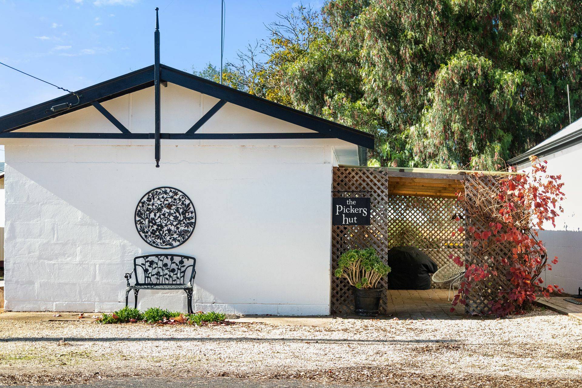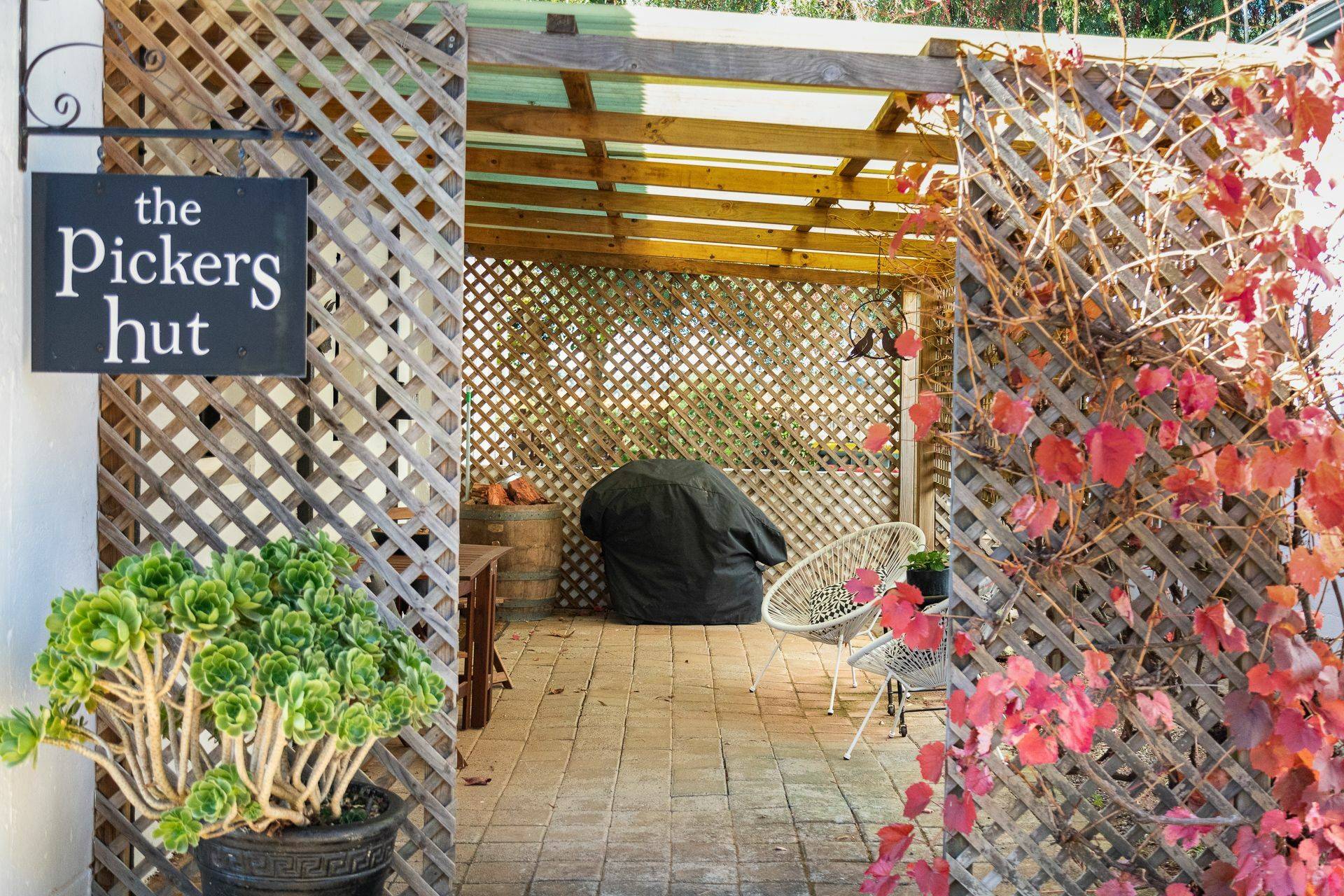 ‘Picker’s Hut’ is a cosy and intimate space featuring a single bedroom and extensive pergola.