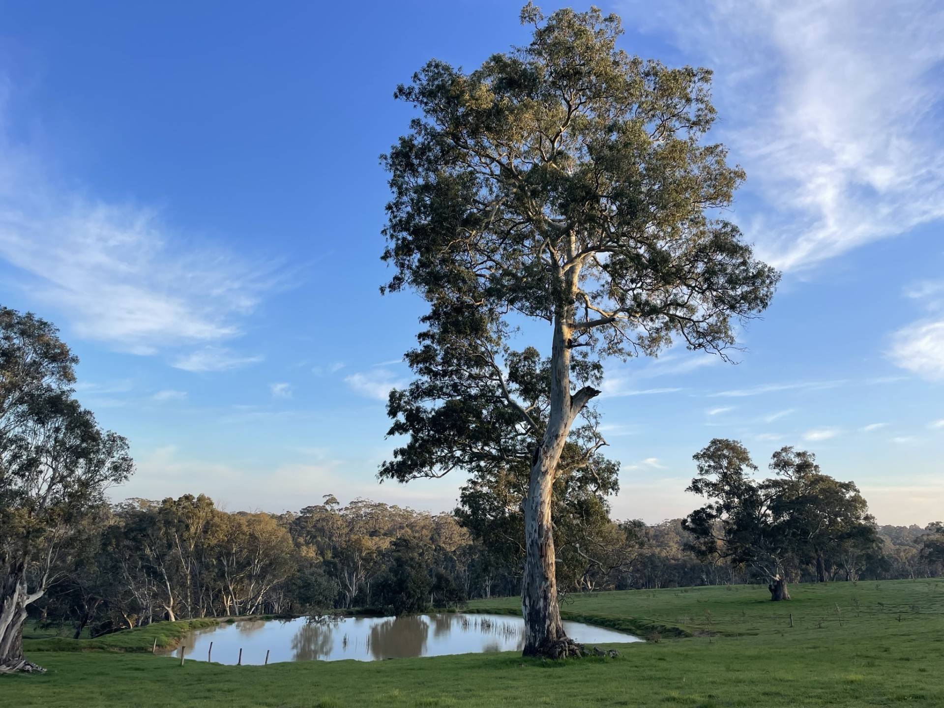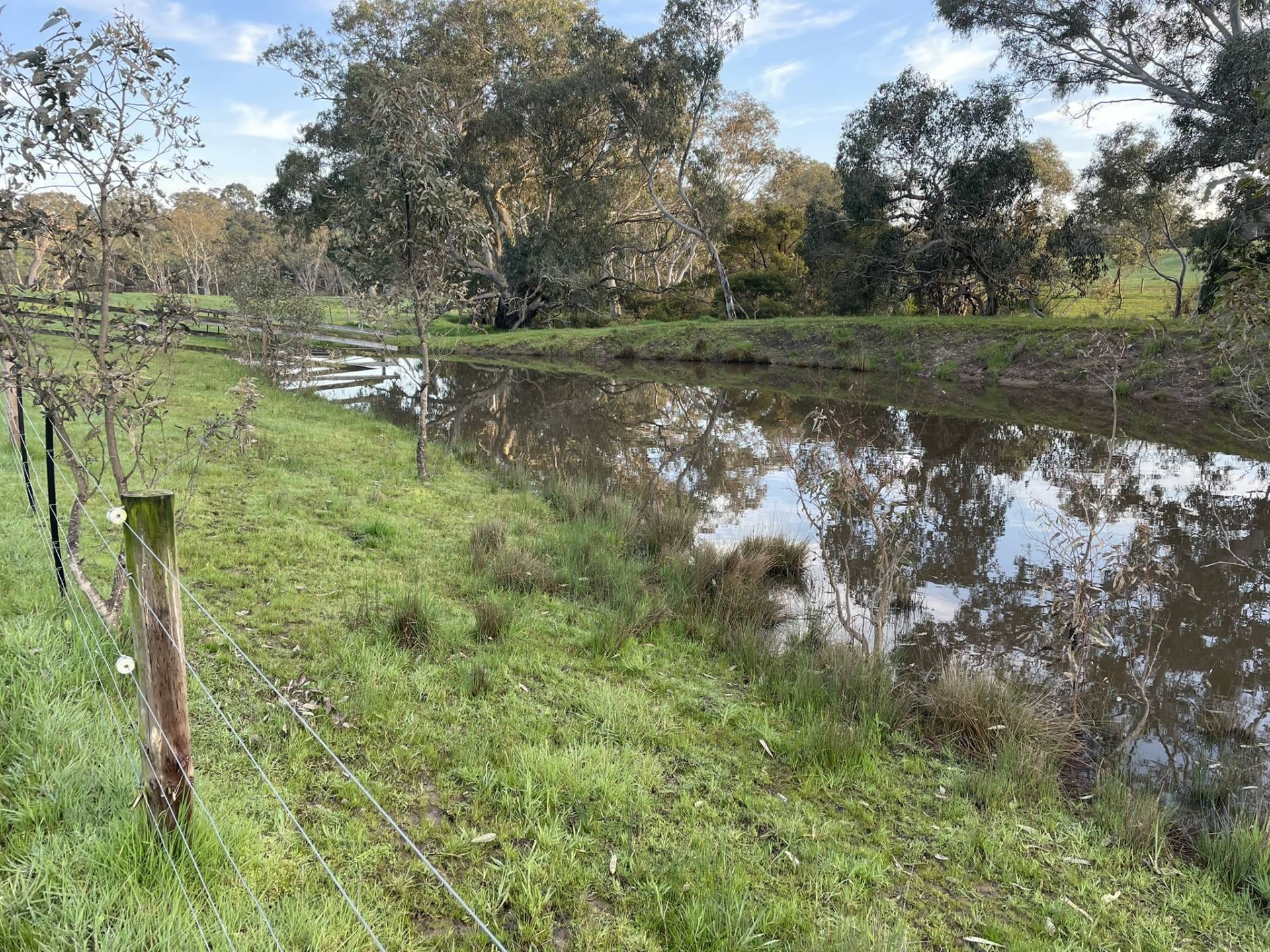 The property has several good dams along with a year round creek and is fenced into two main paddocks. The creek and attractive native vegetation has also been fenced. Huge gums stud the property, adding to the overall aesthetics. Pastures of phalaris and clovers are boosted by the productive medium grading to heavy loam.  Adding to the character of the property is the gentle undulation.