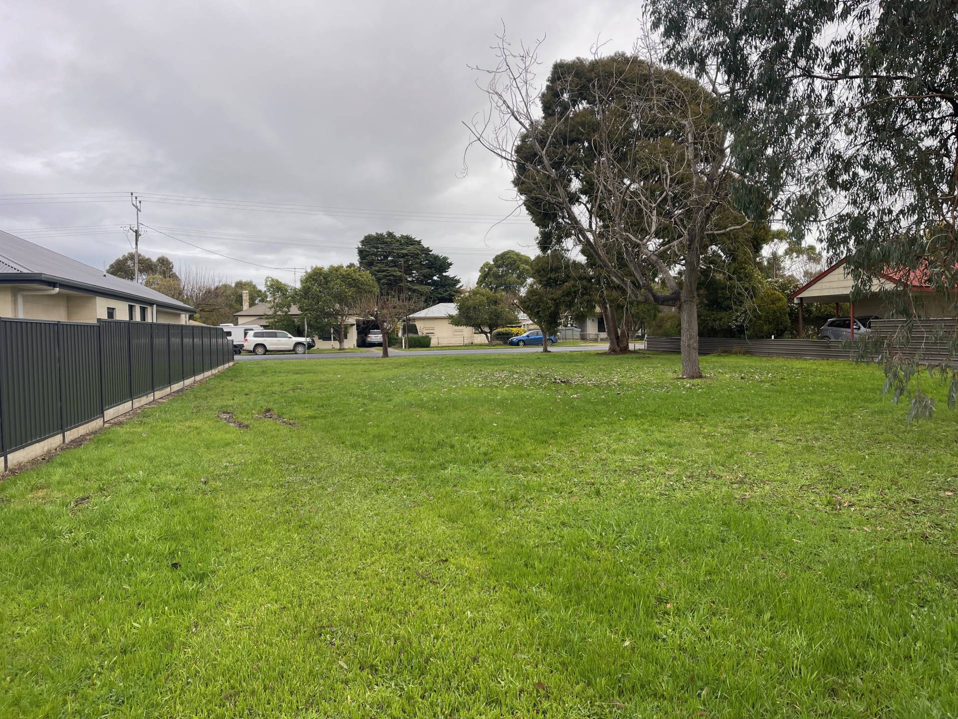 The allotment boasts a delightful setting with charming, established trees dotting the landscape. The property is thoughtfully fenced, ensuring privacy and security for prospective owners. Mains water connection is readily available, while power is conveniently accessible along the front of the property, providing ease and convenience for future construction.