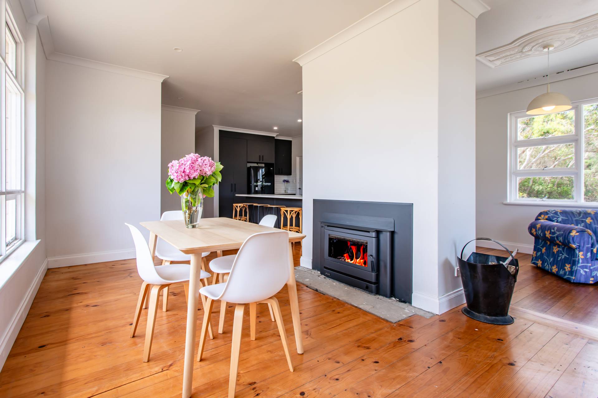 The property also offers a recently renovated stone home. Upon entering the home you will find a white and bright open plan living area with beautiful light flowing through the many windows which also provide vast views of the surrounding property. The area has been completely renovated with the stunning new kitchen being the show stopper. The kitchen offers a huge island bench, appealing charcoal cabinetry, dishwasher, gas cooking and ample storage. The living and dining area further complement the kitchen with slow combustion fire and split system adding comfort all year round.