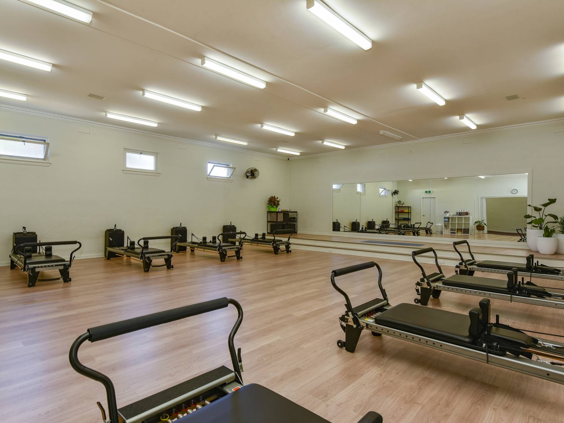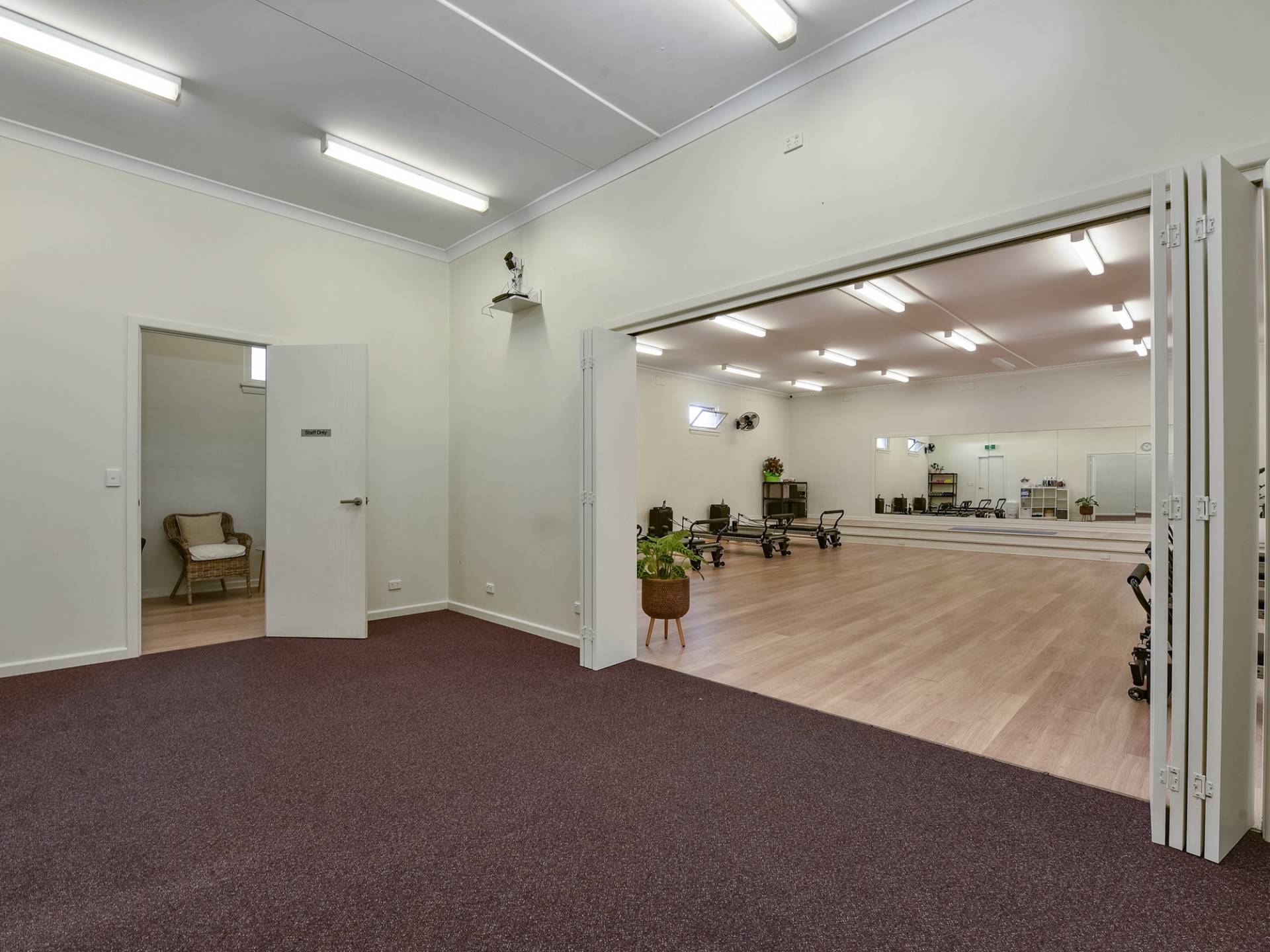 At the rear of the building, a vast studio is presently occupied by a popular pilates business. Adjacent to it, you'll find smaller breakout rooms, ideal for personalised consultations or intimate fitness classes. This area also features well-maintained toilet facilities, ensuring both comfort and functionality.