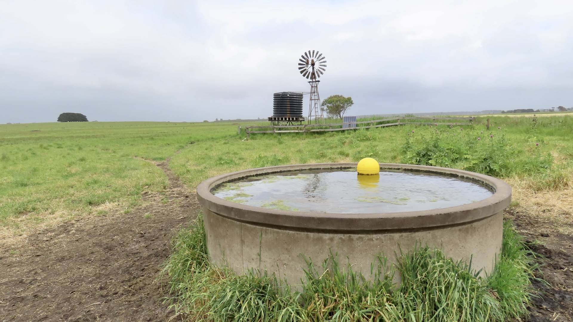 Water is supplied by a bore equipped with a submersible pump filling a header tank. This then reticulates through a 50mm poly main line to concrete troughs. A solar pump draws water from the Eurmeralla River, which runs all year round. There is also a windmill which acts as a back up. Totally reliable and safe from carting water in dry times.