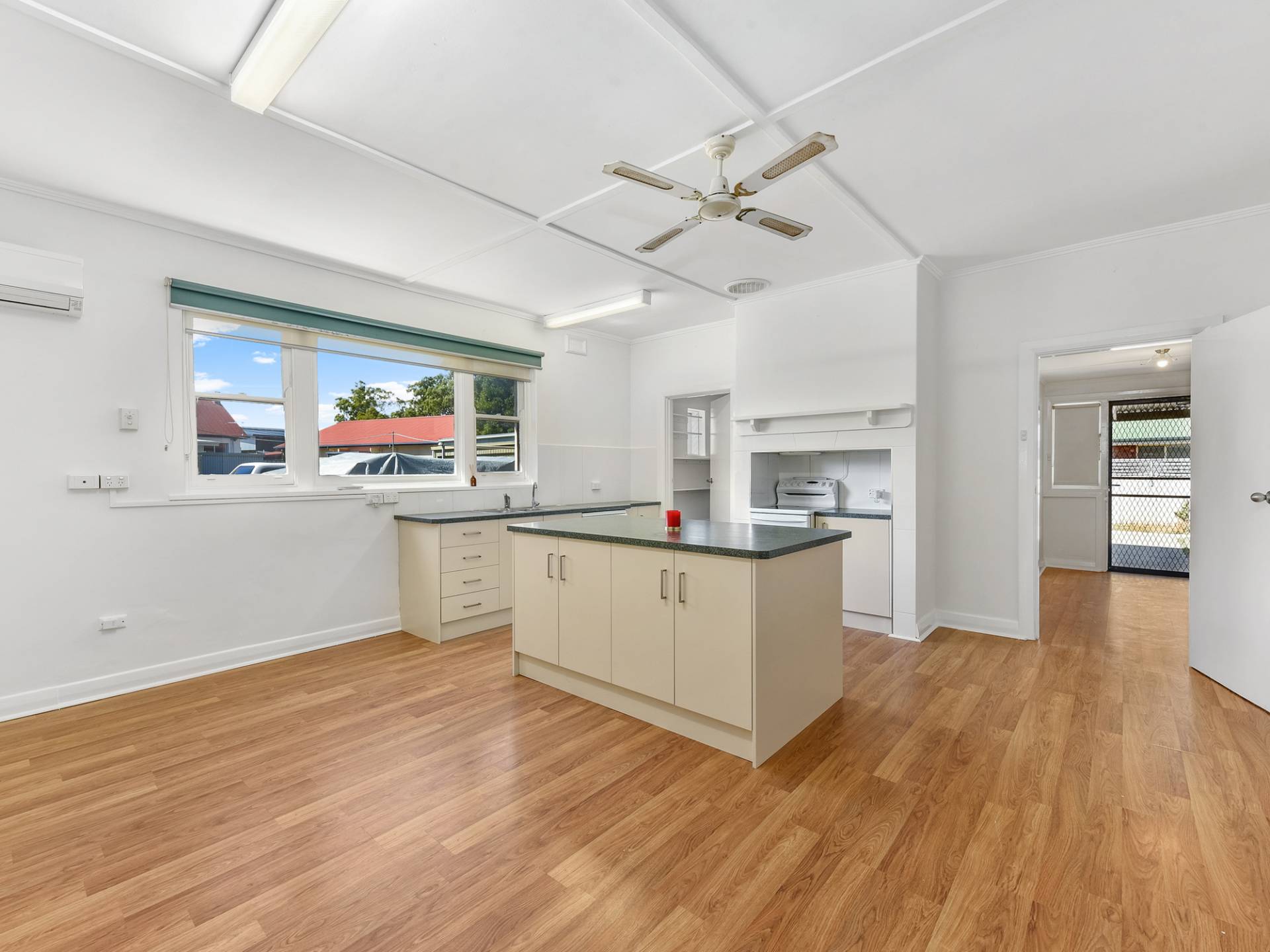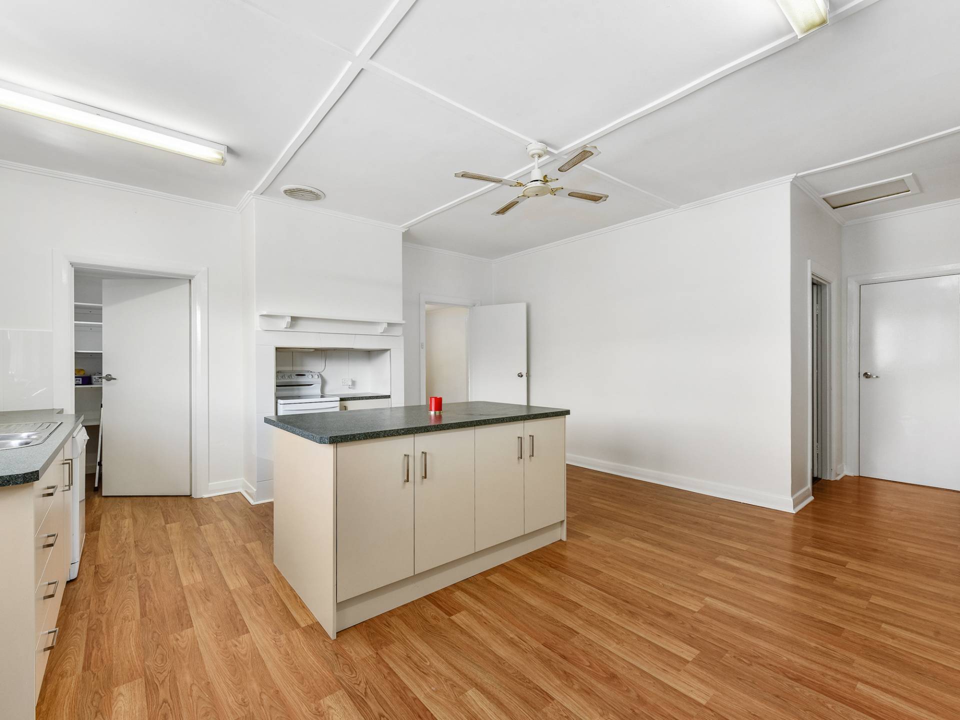 The open plan kitchen and dining area offers an abundance of space and natural light through the north facing windows. The kitchen features a large island bench, dishwasher and walk-in butlers pantry and reverse cycle A/C. Off this area you’ll find the main bathroom.
