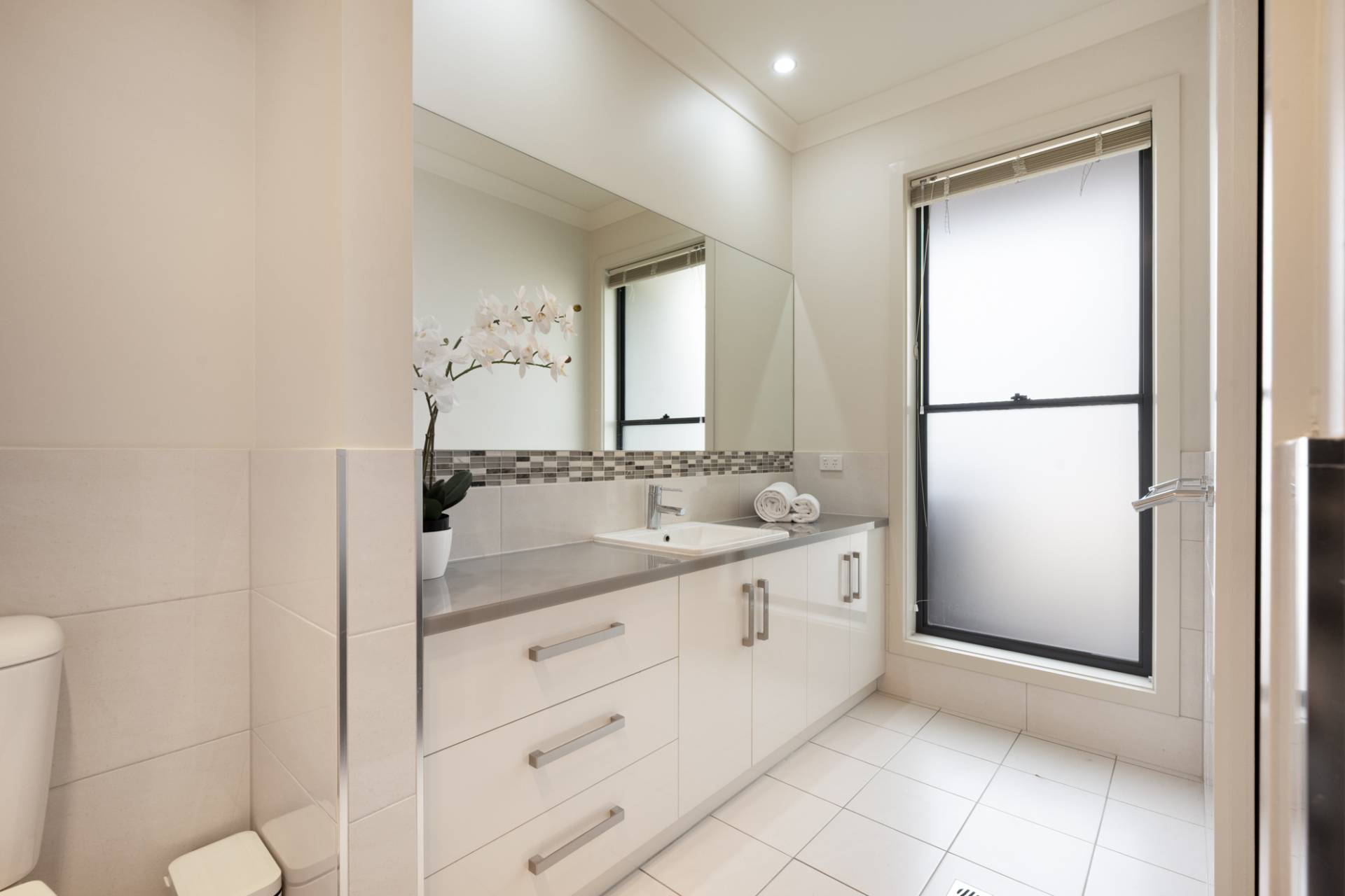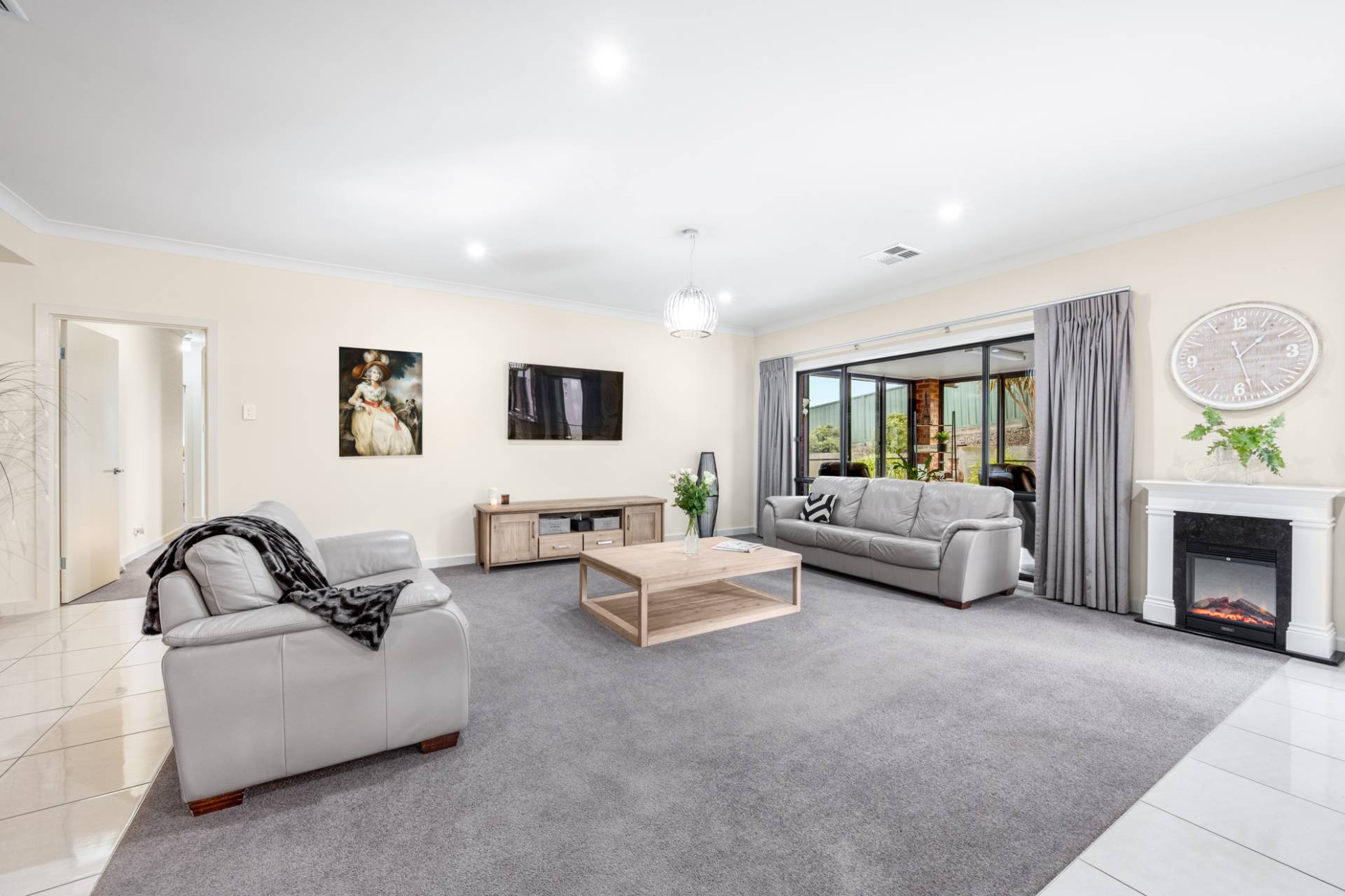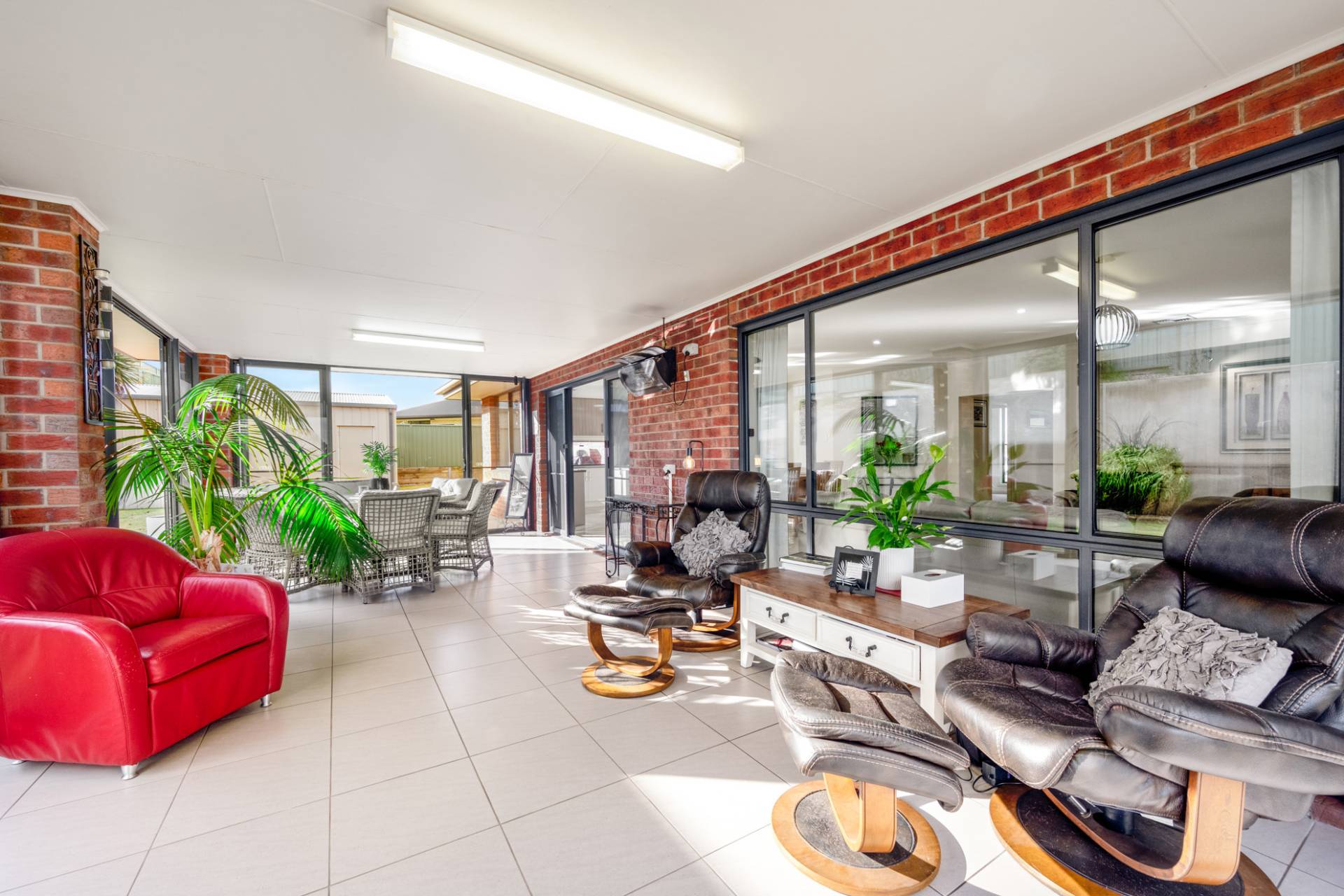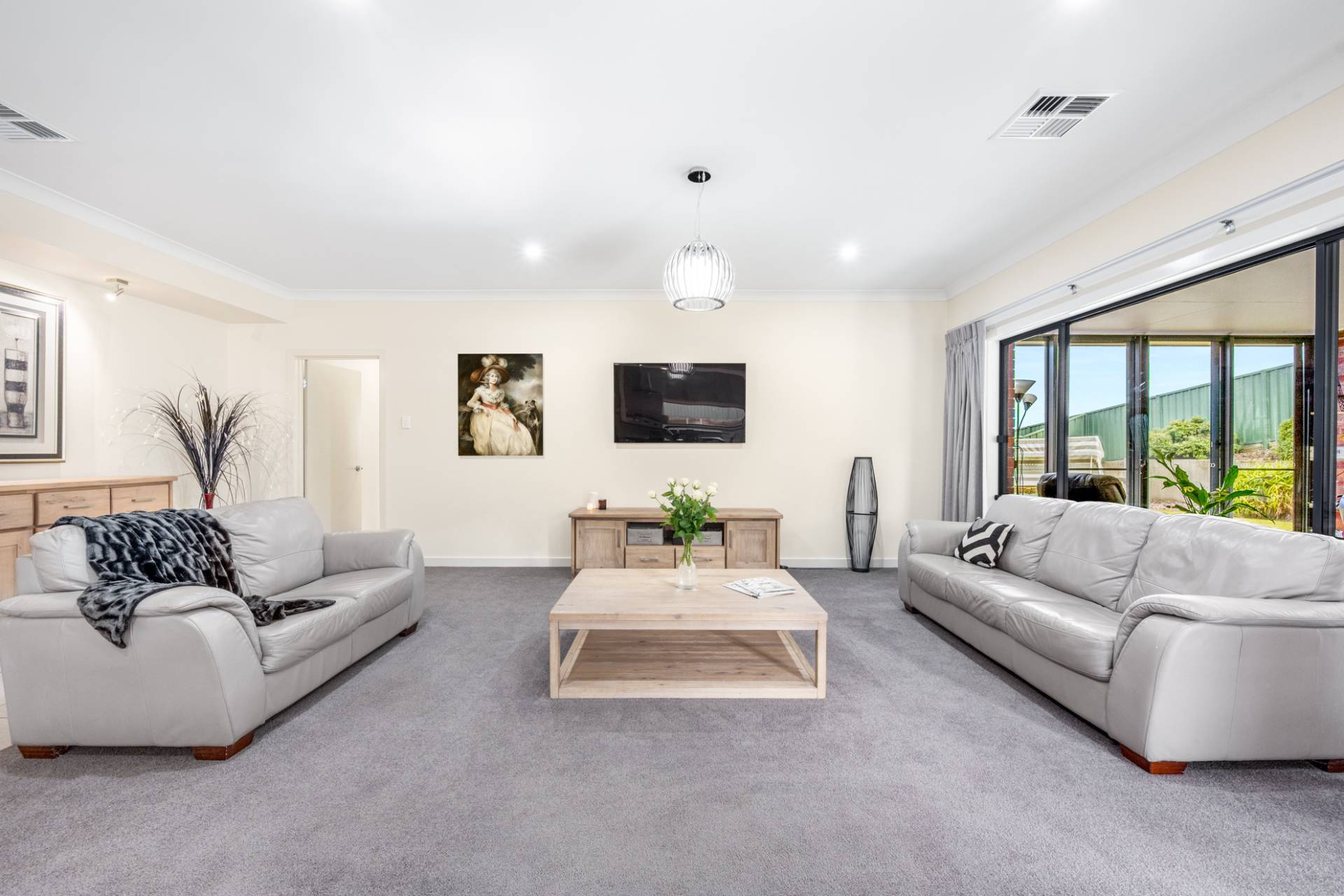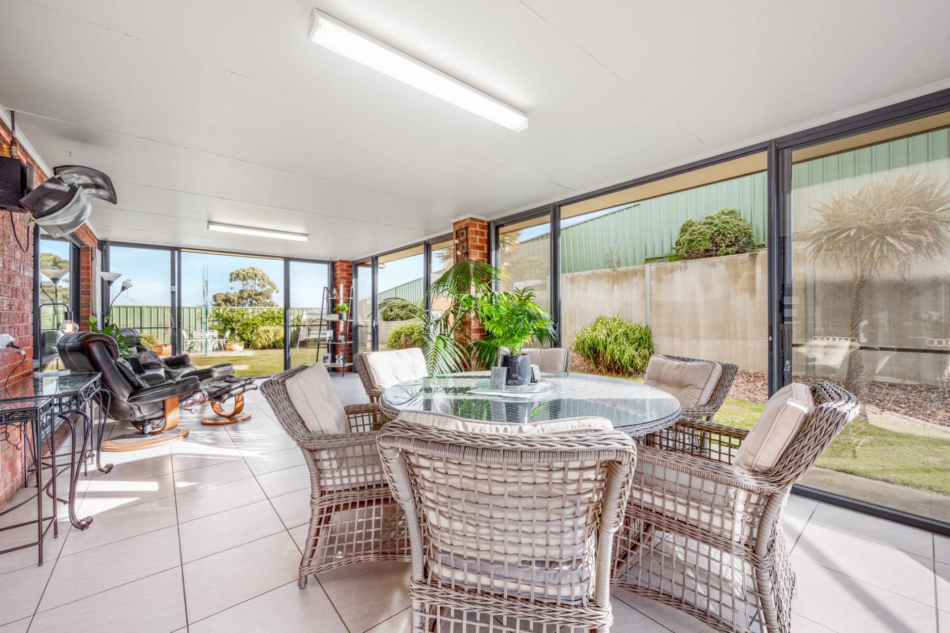 The open plan area extends seamlessly to the glass enclosed and tiled alfresco area with sliding doors on each wall providing the ultimate indoor/outdoor living space. Enjoy a delightful morning coffee or evening BBQ while you entertain guests any time of year in the versatile space or transform it into the ultimate games room or children’s retreat.