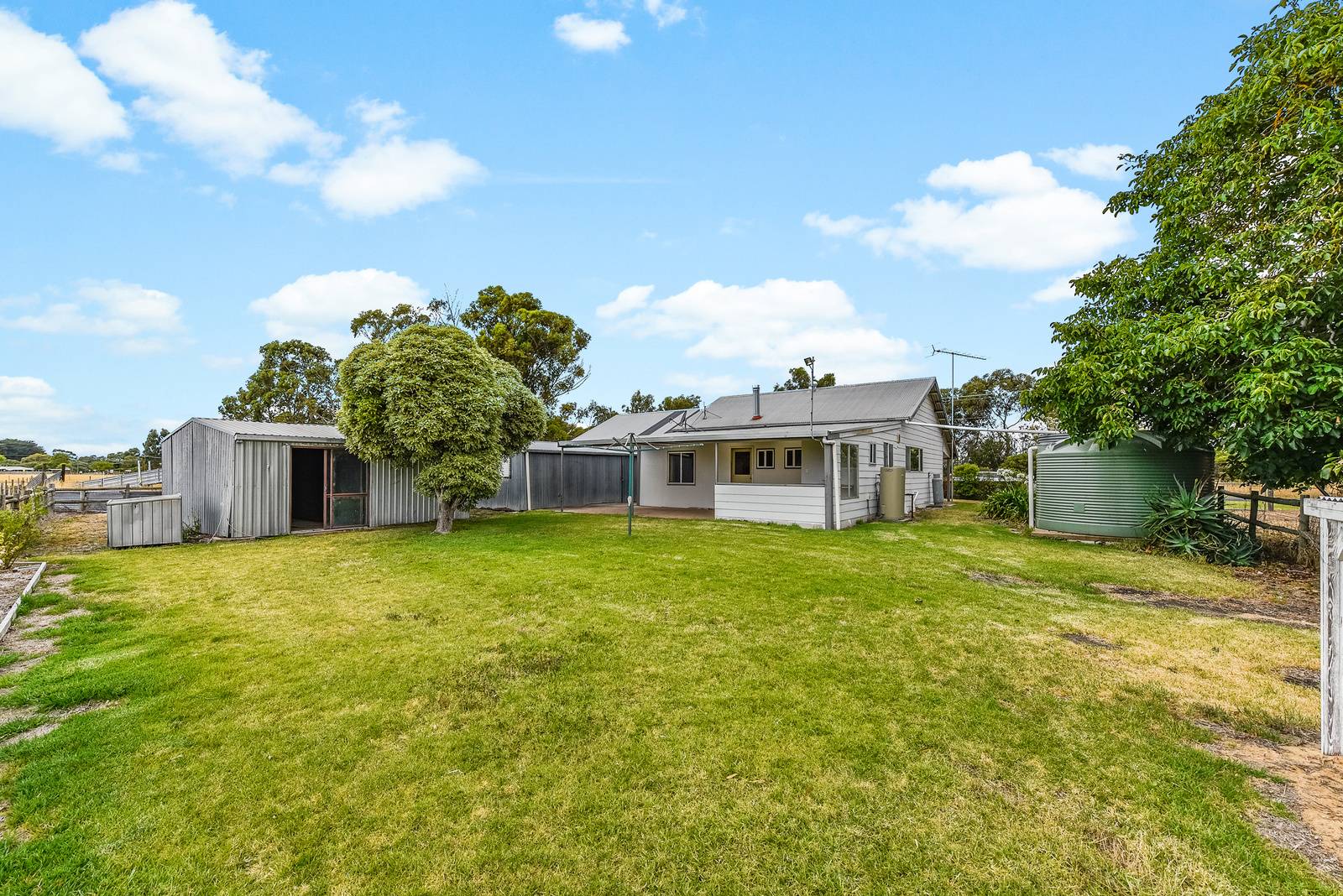 Step outside to the spacious paved outdoor entertaining area (complete with second toilet), perfect for hosting family and friends while enjoying stunning views of the surrounding paddocks and countryside. The property also offers a double-bay shed with a concrete floor and power, as well as additional storage sheds for extra convenience. A bore and ample rainwater storage are also on offer.