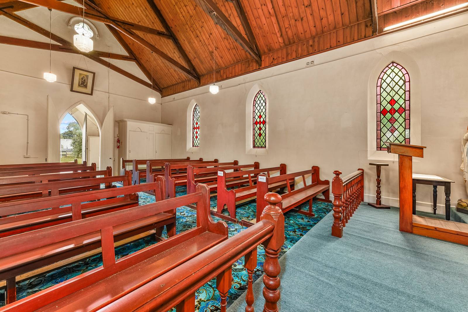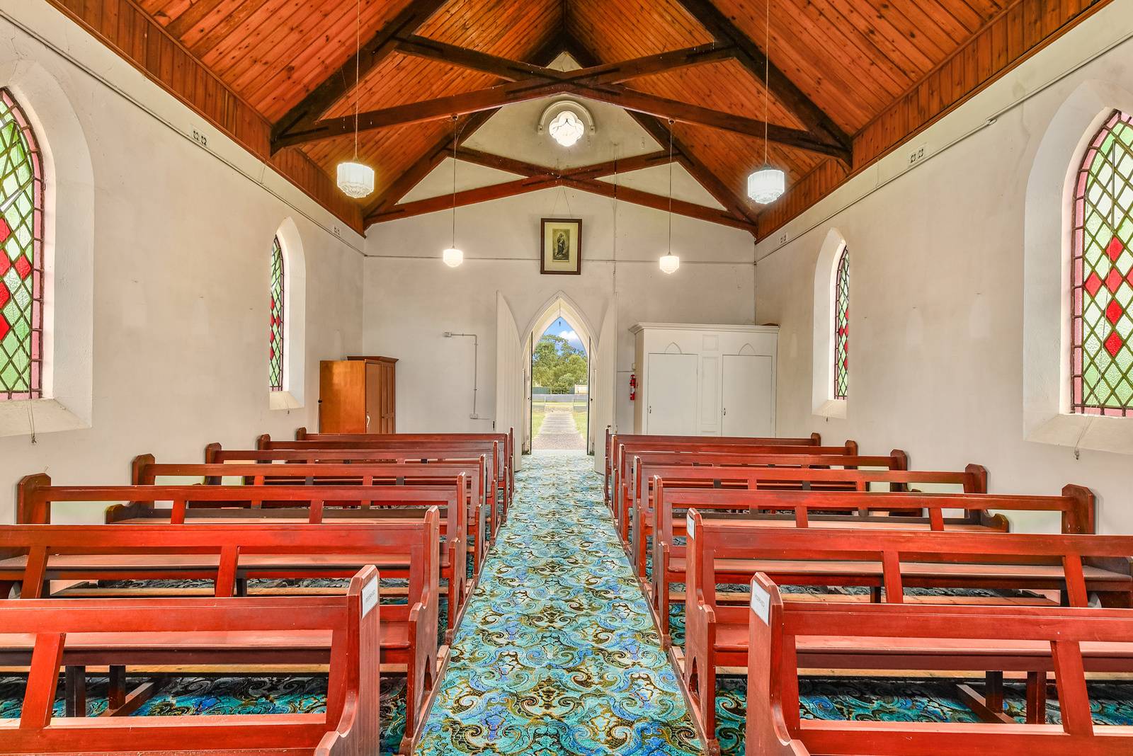 Built from solid Mount Gambier stone the main room of the church offers 81m2 of space with elevated altar to the Southern end, with adjoining entrance foyer. The architectural beauty is presented through the breathtaking cathedral pitched timber ceilings, stained glass feature windows and arched double doors, and for convenience there is an adjoining toilet accessed from outside.