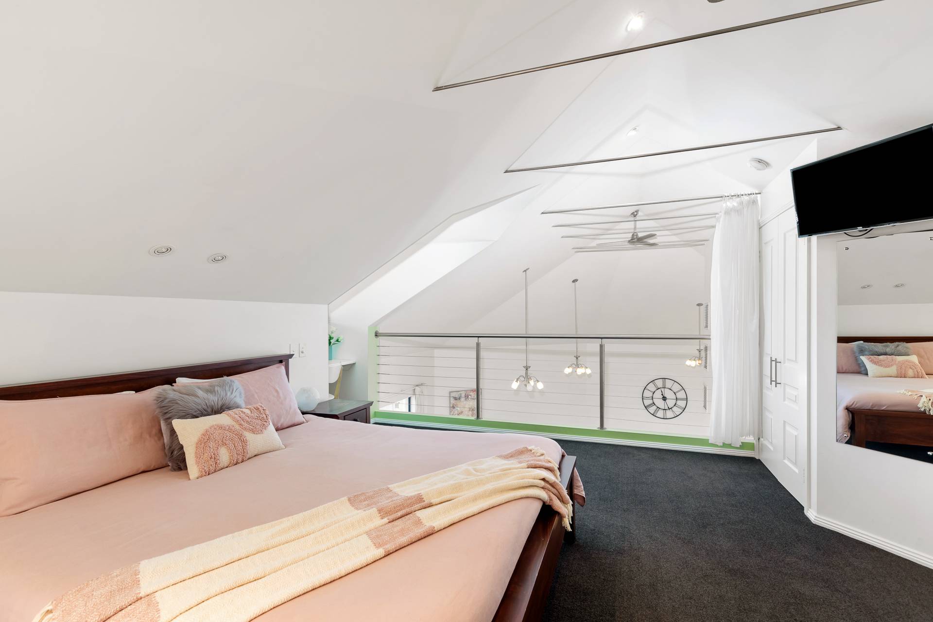 Upon entry you'll be greeted by the striking high ceilings providing the ultimate 'wow' factor. The fully self-contained kitchen and open plan living are spacious and filled with natural light, offering the perfect, modern entertaining or relaxation space. This area seamlessly transitions to an external private entertaining courtyard area with BBQ, lawn & tranquil garden. The master bedroom is situated on a unique mezzanine level featuring a king size bed, private ensuite featuring a double rainfall shower, large walk-in robe and study nook.
