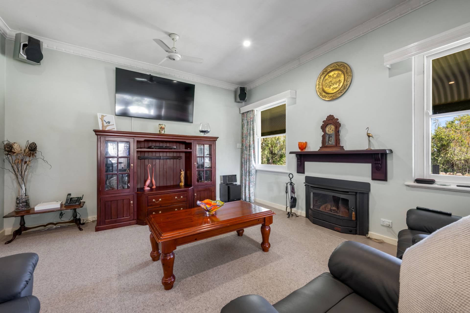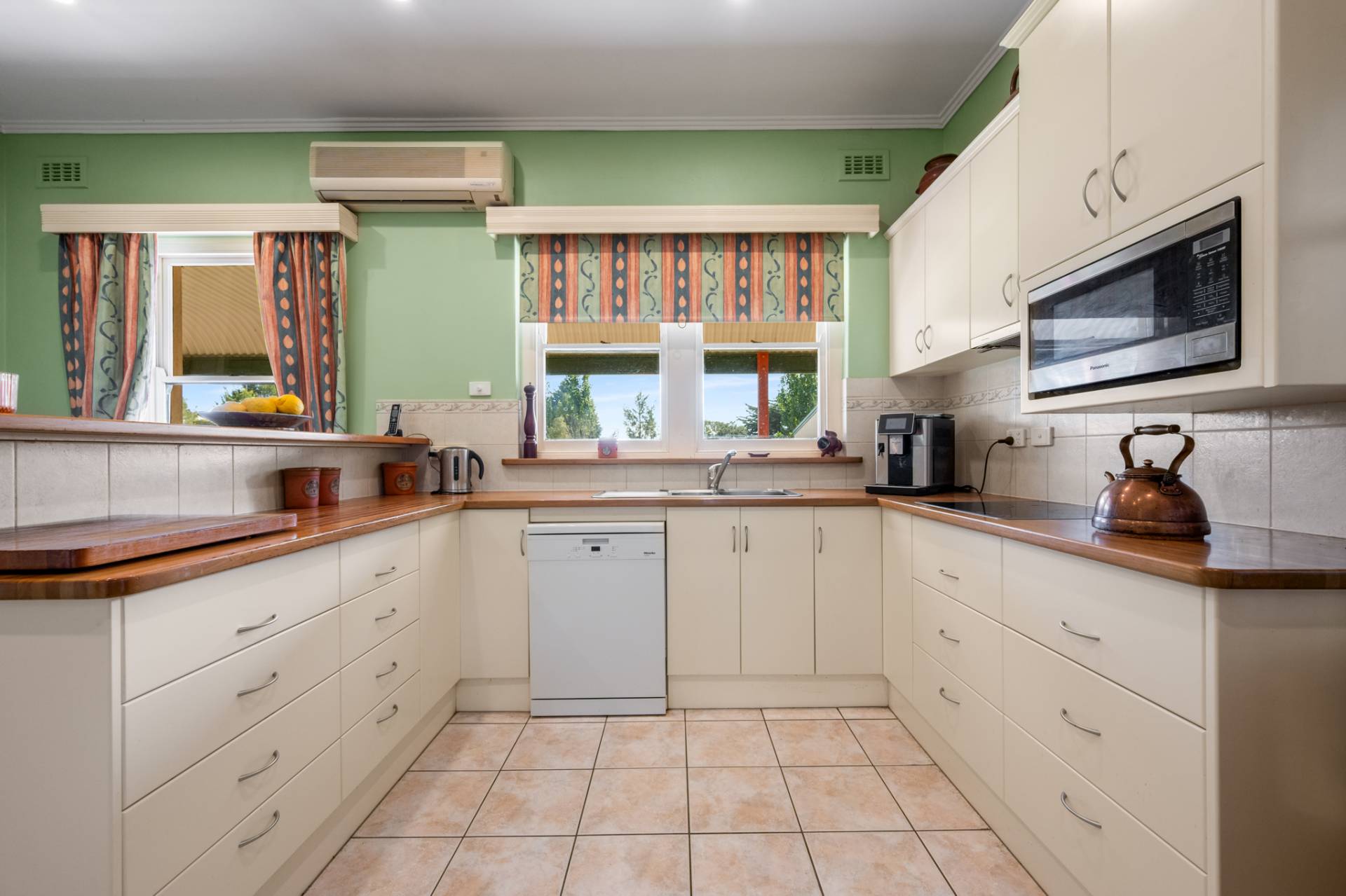 • Open-plan kitchen and casual dining area with in-wall oven, dishwasher, and ample storage. An adjoining formal dining area connects to the large yet cosy lounge with split system air conditioning and a slow combustion fireplace. All areas offering stunning garden views out the many large windows.