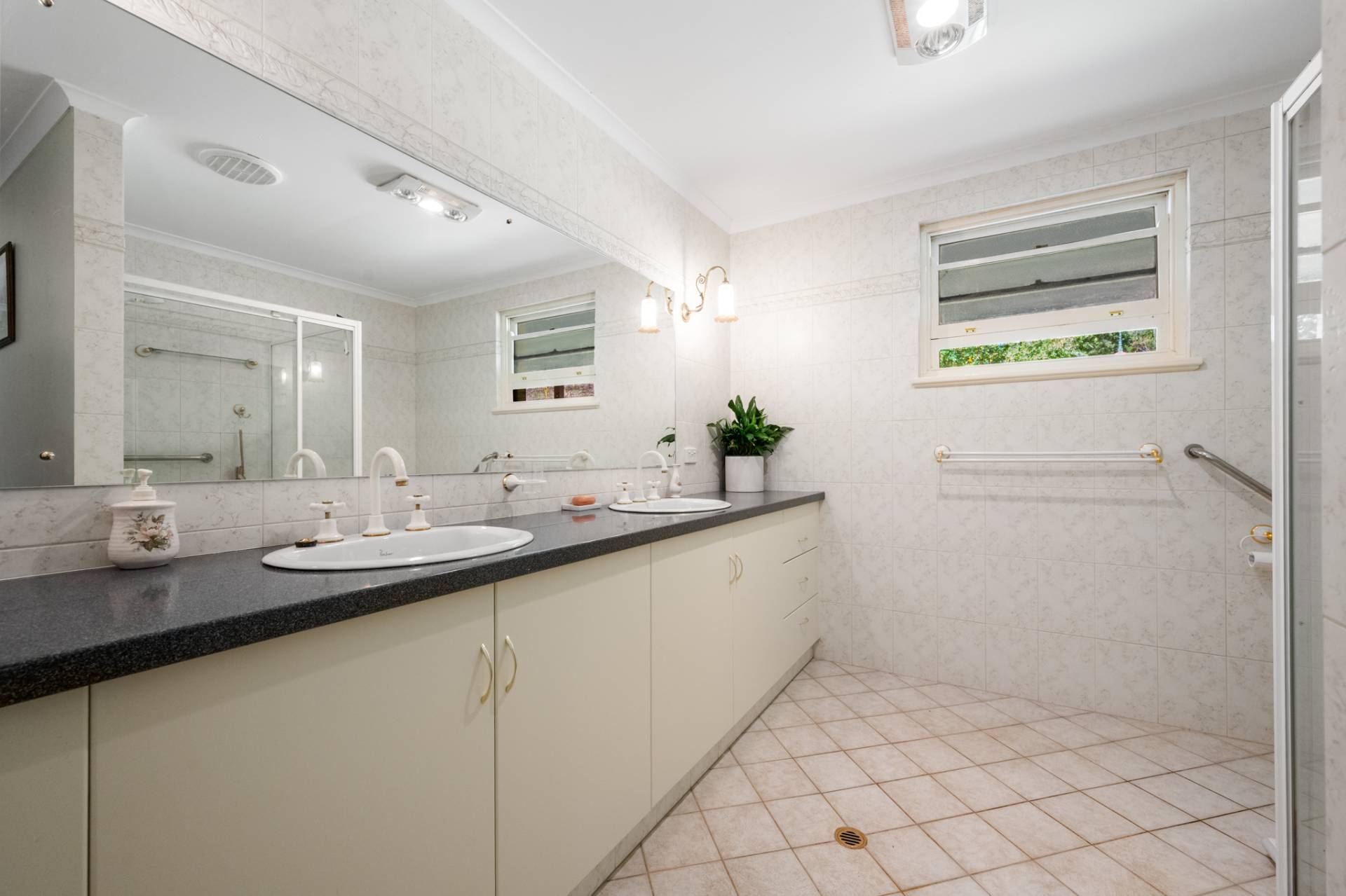 • Master bedroom with expansive walk-in robe and luxurious ensuite featuring his-and-her sinks, shower, and toilet