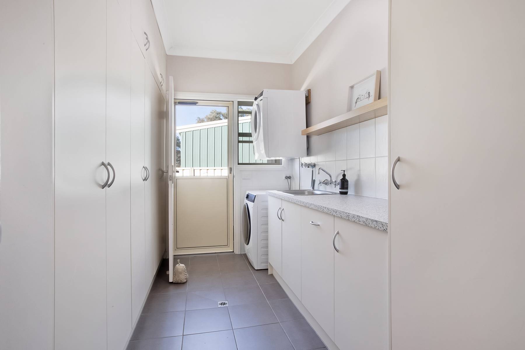 • Functional laundry: Generously sized with floor-to-ceiling storage and extensive bench space.