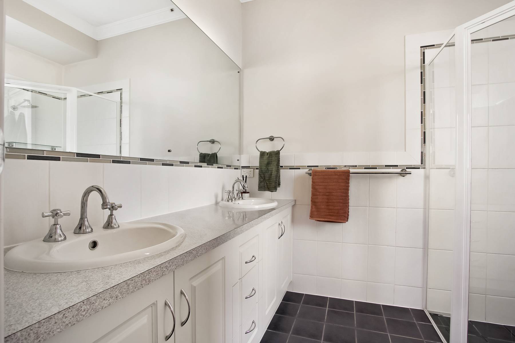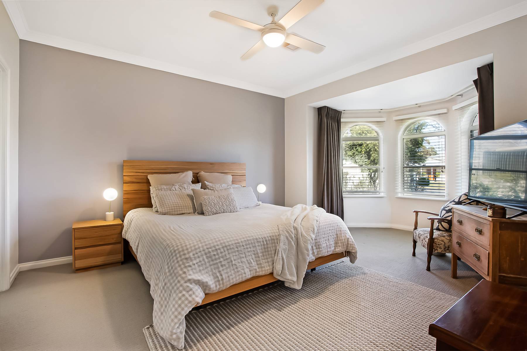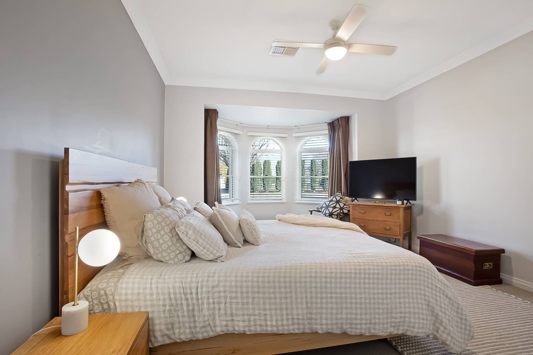 • Master retreat: The luxurious main bedroom is bathed in natural light via elegant bay windows with plantation shutters and includes a spacious walk-in robe and stylish ensuite with double vanities.